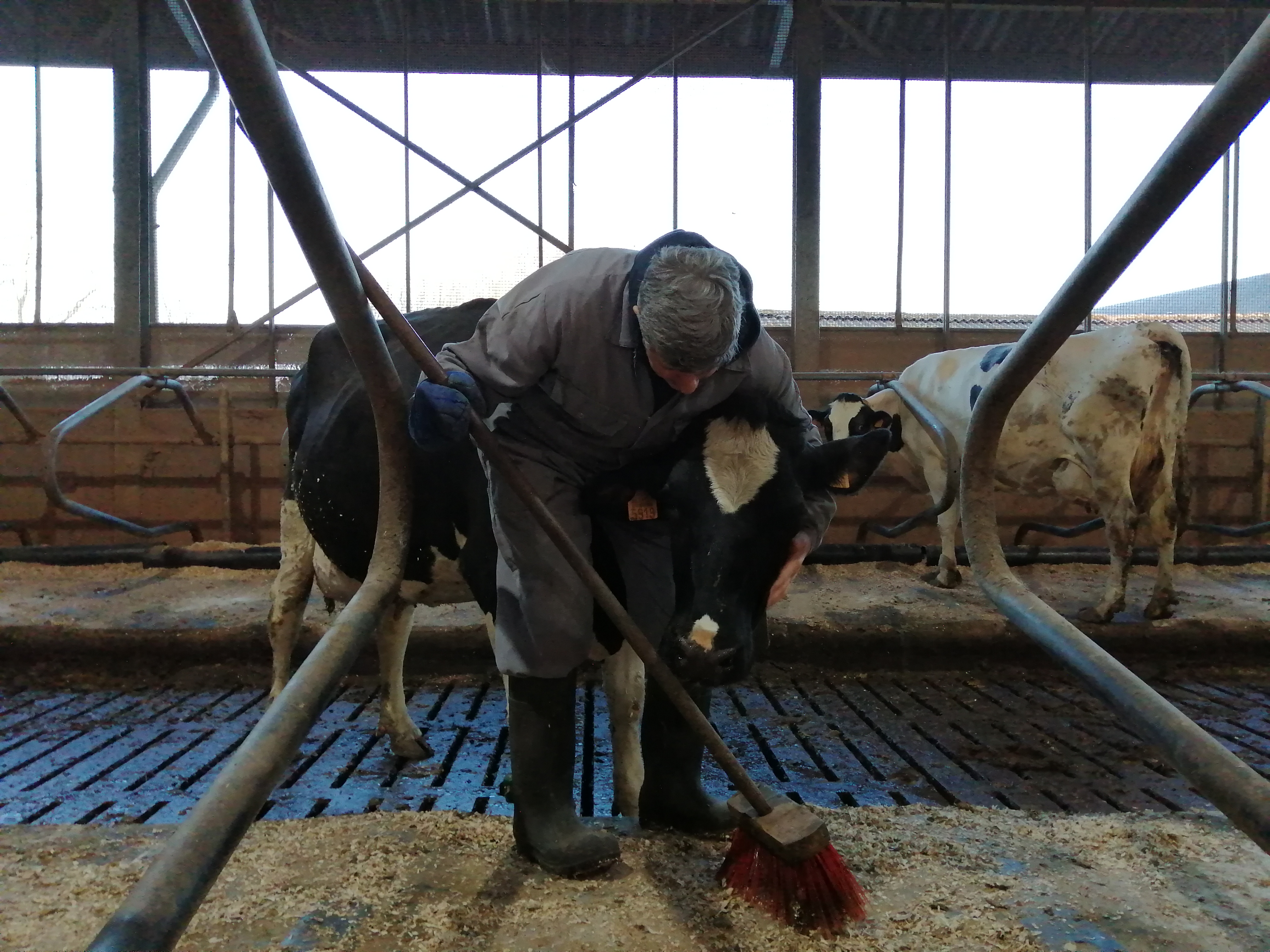 Gisterenavond kwam ik rond 18 uur in de melkveestal, om de koeien te verzamelen zodat we konden beginnen melken. De ondergaande zon scheen prachtig binnen – want door het mooiere weer gaan de windzeilen nu ook al wat meer open. Die lage zon in combinatie met onze ledlampen zorgde voor prachtig licht. Onze mestrobot had z’n werk ook mooi gedaan. Koe Lettie stond helemaal in het midden van de wachtruimte al te wachten… Het was echt een mooi plaatje en dus greep ik naar m’n smartphone. Er volgden nog meerdere foto’s: van Bauke, van Olsa, van Fien, van Janna en van Venezuela. Ik ben toch wel verliefd op koeien, op onze koeien!