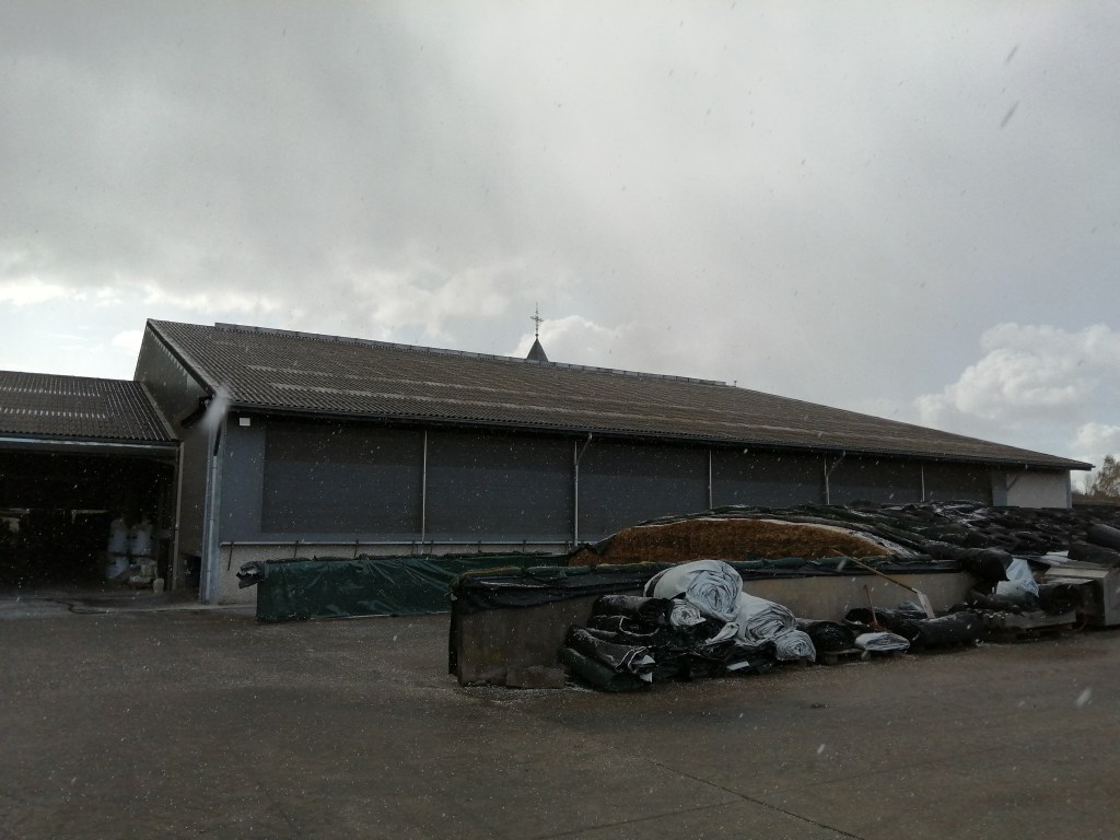 Want het landwerk is ook achteruit… Normaal is het grootste deel van de mest rond deze tijd al uitgevoerd op het land. Maar door de natte omstandigheden is er nu nog maar een klein deel uitgereden. Er is niet veel aan te doen, maar het zorgt toch voor wat stress en zorgen. Want ook ons voeder in de grote sleufsilo is bijna op, zoals je ziet op bovenstaande foto, dus we kunnen eigenlijk vers gras beginnen inkuilen of voederen. Het gras op de weiden en velden is echter ook nog niet lang omdat de temperaturen nog te laag zijn om het goed te doen groeien. Lente, waar blijf je?
