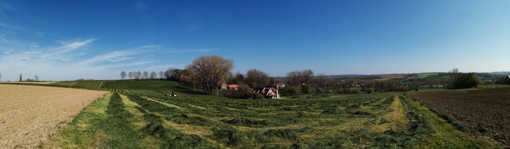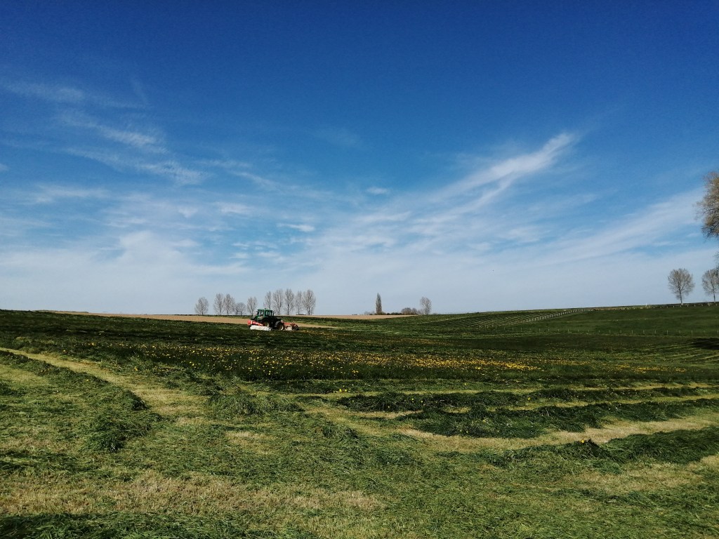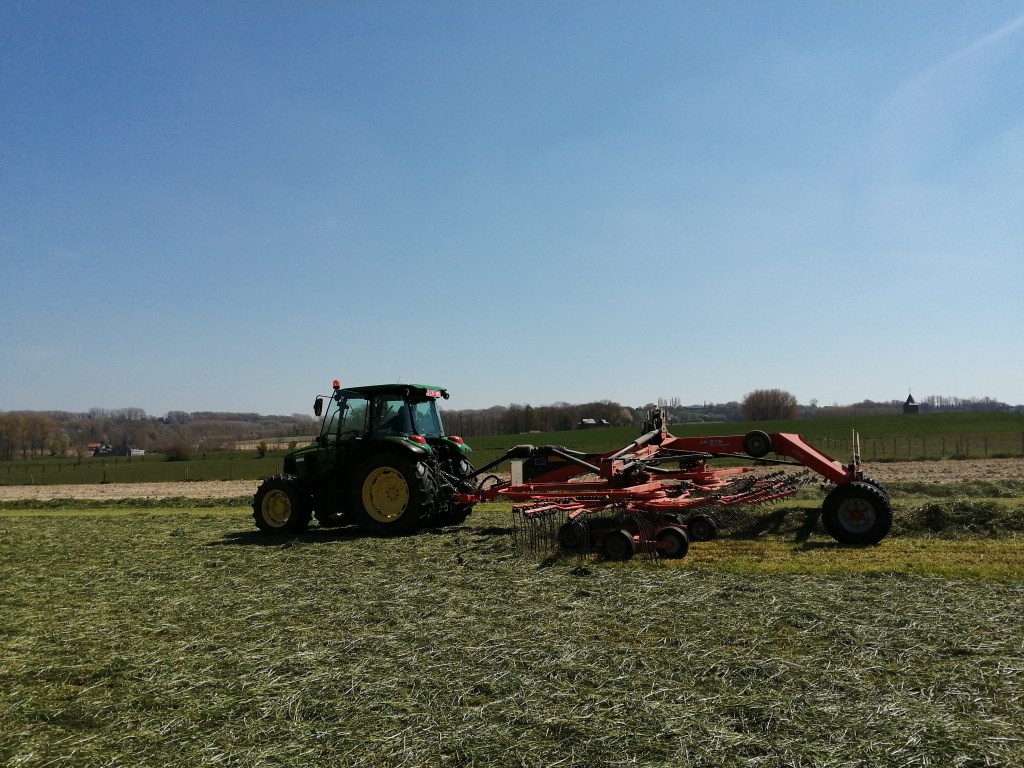 Op 23 en 24 april werd de eerste 20 ha gras van 2021 gemaaid. Op diezelfde dagen werd het gras ook meteen geschud. Op 25 april werd het gras dan op rijtjes geharkt en vervolgens opgeraapt met de opraapwagen. Hoe en met welke machines dat allemaal gebeurt, zette ik een paar jaar terug eens op een rij in Van gras tot graskuil. Verder in dit bericht heb ik foto’s van het maaien, het harken en het oprapen. Die taken werden respectievelijk uitgevoerd door vader Herman, moeder Veerle en vriend-des-huizes Jeffrey. Echte toppers! Van het harken en oprapen maakte ik ook een video, die je helemaal onderaan in dit bericht terug vindt.