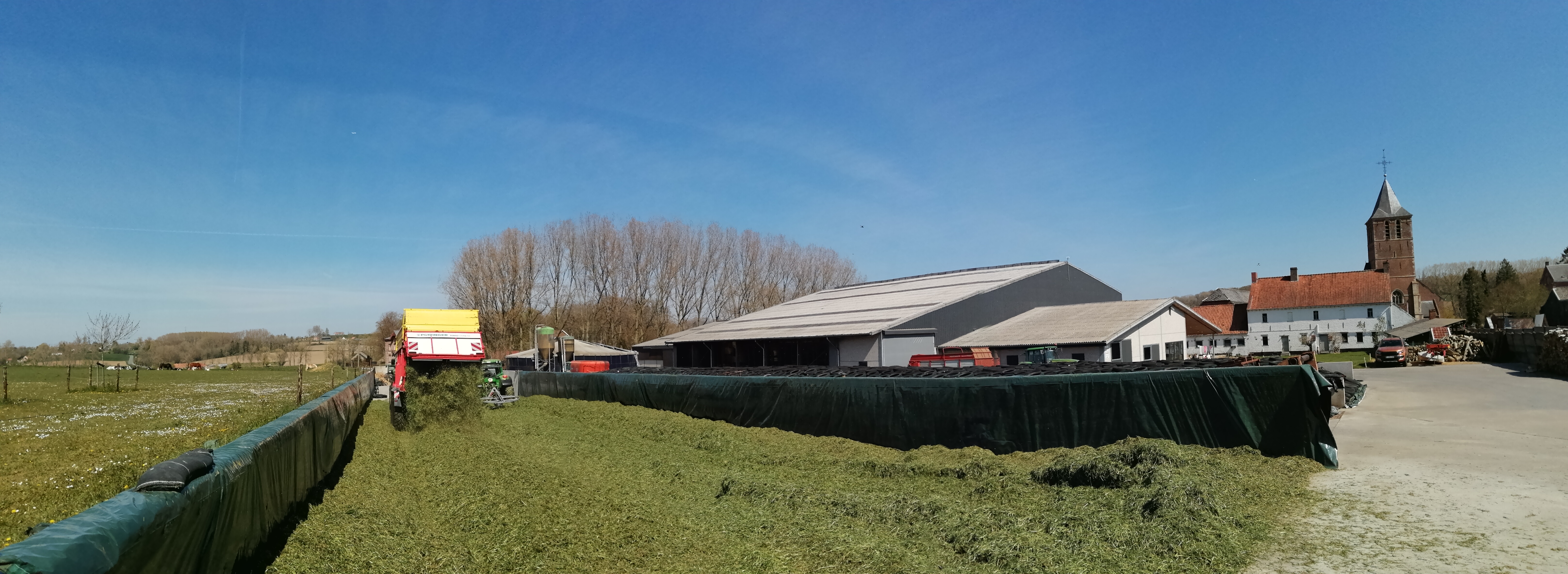 Uiteindelijk kwam er nog heel wat gras bij in de kuil. Er werd doorgereden tot alles binnen was en de dag nadien hebben we in de voormiddag de kuil afgedekt. Vorig jaar zat tegen 27 april de volledige eerste snede gras al ingekuild. Wat later, op 5 mei, begonnen we aan een deel van de tweede snede. Daarover konden jullie lezen en kijken op Weken vol gras. Nu moeten we nog wachten op beter weer voor we de weides voor het eerst kunnen gaan maaien. Alles is veel later dit jaar, het is dan ook nog niet echt standvastig kortebroekenweer geweest.