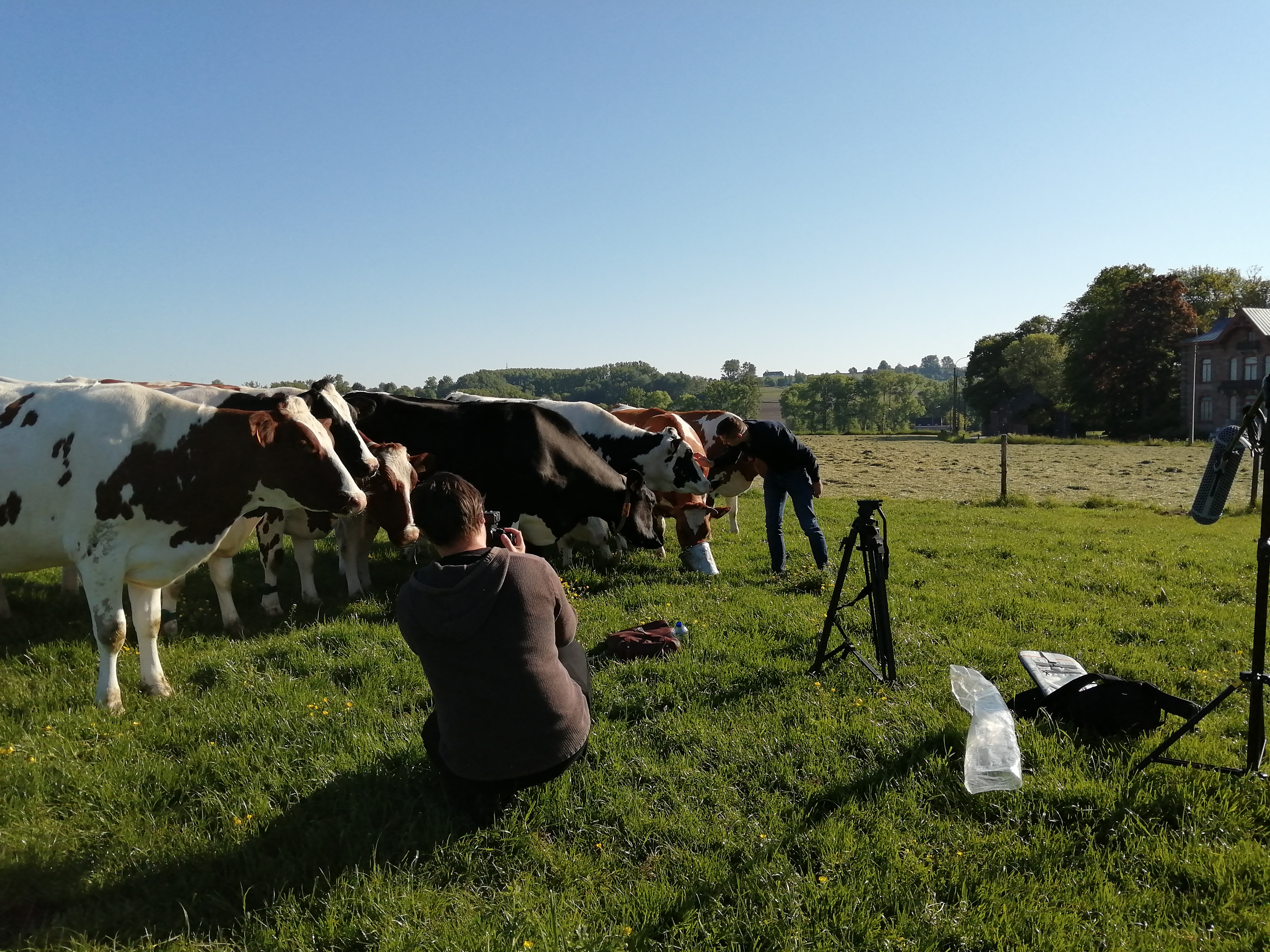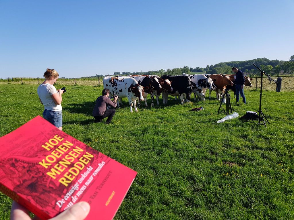 Vader Herman vertrok om 6u ’s ochtends met de opraapwagen om het eerste gras van de dag. Toen dat op de kuil gelost werd, vond er een opname van een promotiefilmpje plaats op de weide naast de kuil, bij de droogstaande koeien en volle vaarzen. David Van Turnhout schreef het boek ‘Hoe koeien mensen redden’ over de eeuwige zoektocht van de mens naar remedies tegen ziektes. Het woord vaccin komt trouwens van het Latijnse ‘vacca’, wat koe betekent. Het eerste vaccin werd namelijk ontwikkeld in 1796 aan de hand van de koeienpokken. Dit en veel meer is te lezen in Davids boek, waarvan ik het filmpje hieronder ook post.