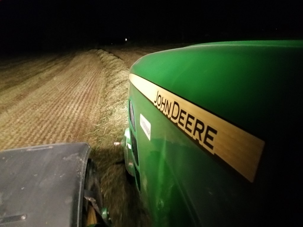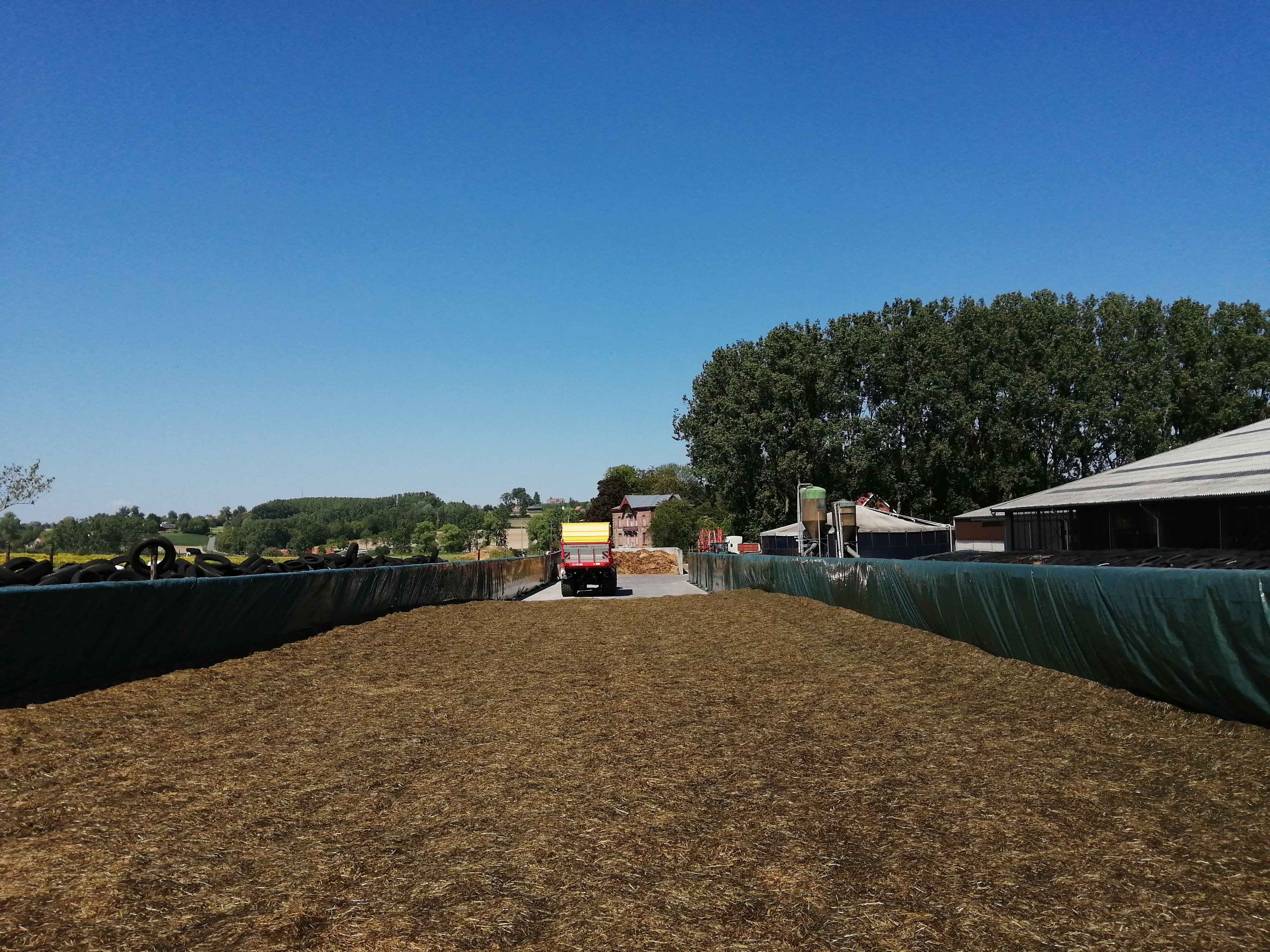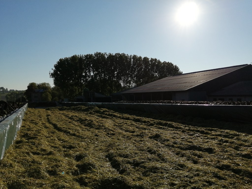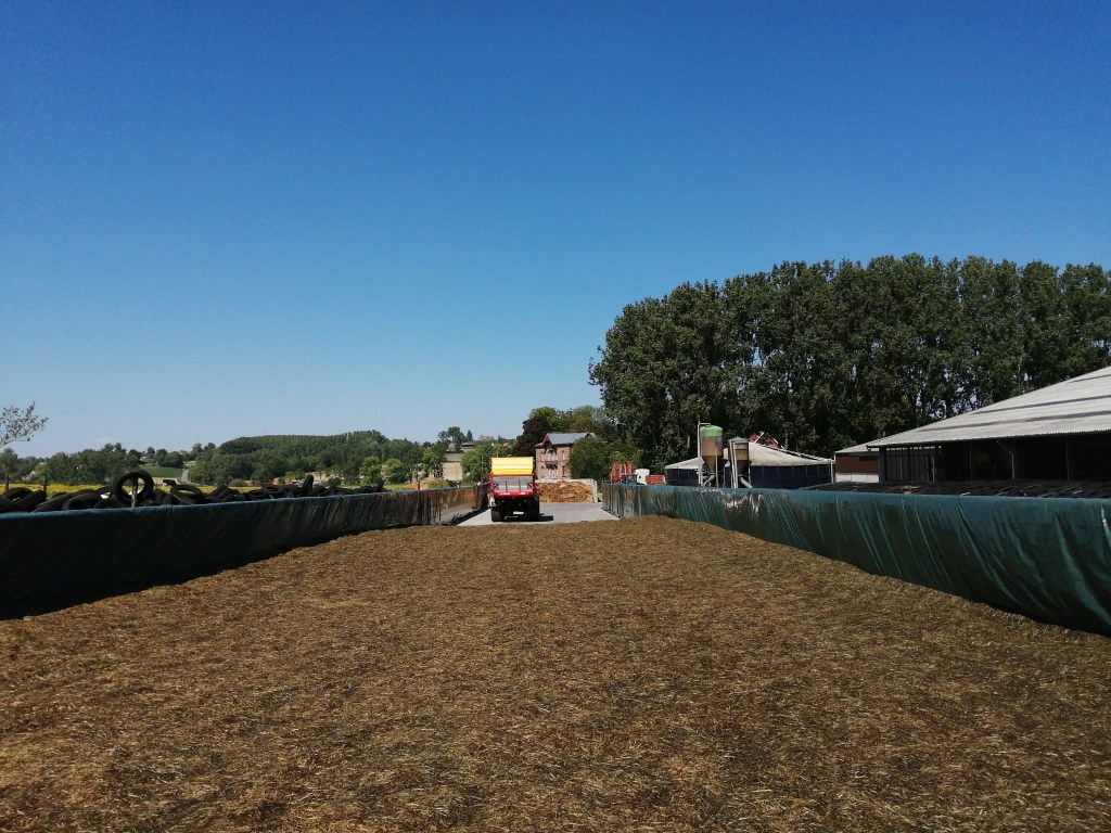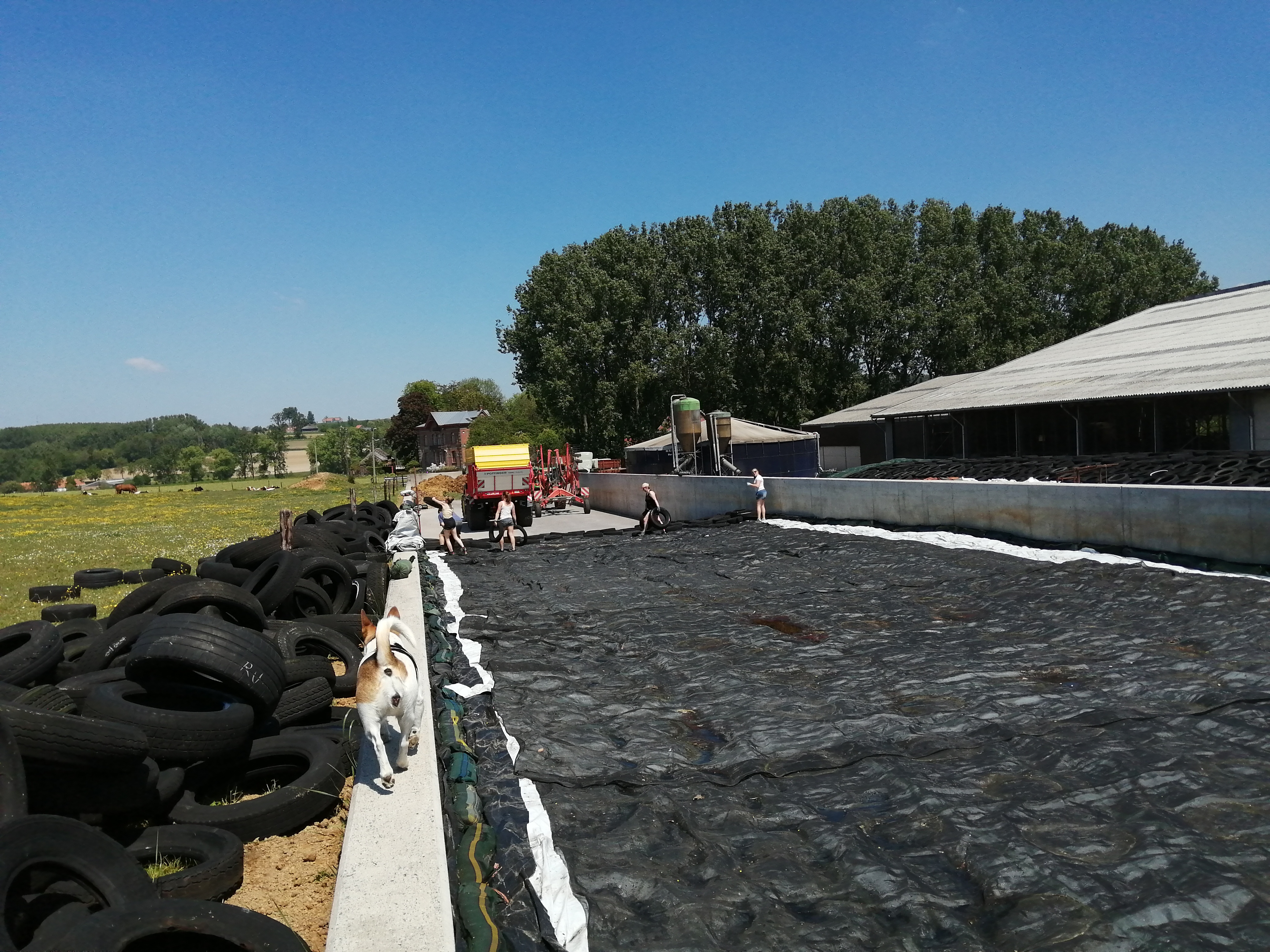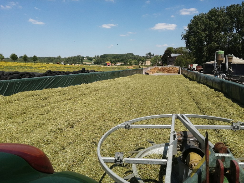 Bovenstaande foto werd om 17u30 genomen. Tegen dan lagen uiteindelijk ook de banden op de kuil. Het afdekken is altijd een heel werk, maar we zorgen ervoor dat alles goed gedaan is, zodat we geen of zo weinig mogelijk verliezen van ons gras (en later onze maïs) hebben. We waren heel tevreden met ons werk van de afgelopen dagen! Dat postte ik ook op Facebook.