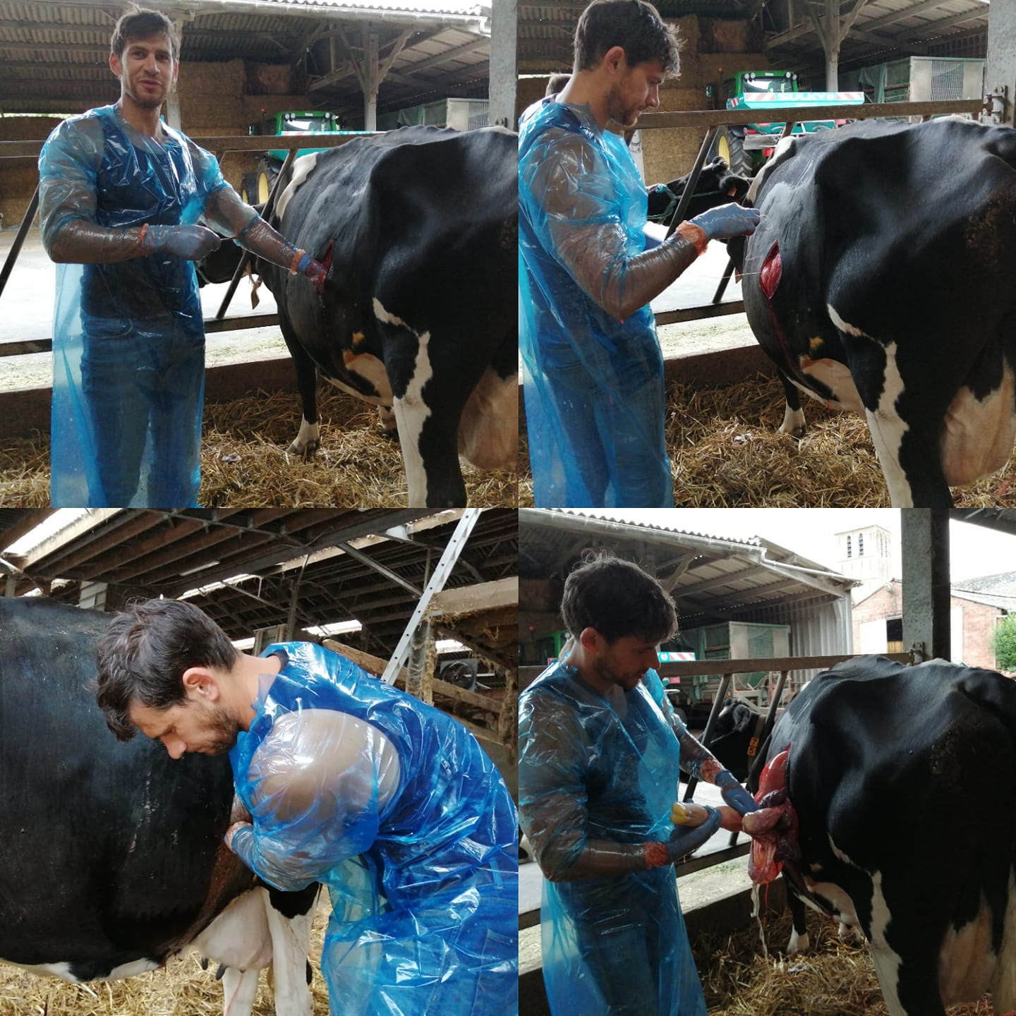 Het kalf, een vaarsje, kwam ter wereld maar had het erg moeilijk om zo plots te moeten beginnen ademen. 3 weken voor de uitgerekende kalfdatum zijn de longen van het kalf nog niet volledig volgroeid of beter gezegd nog niet “rijp”, nog niet klaar om al te moeten werken. Het kalfje deed z’n best en snakte naar adem. Beetje bij beetje begon het te lukken. De eerste dagen zouden cruciaal zijn. Intussen kreeg koe Jal een spuitje. Ze inslapen was hier de beste keuze zodat ze niet meer zou moeten afzien.
