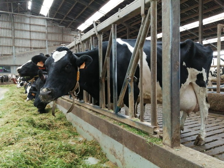 Becky in de afkalfbox, naast de andere hoogdrachtige koeien: Nancy, Jara en Darlene. Hier krijgen ze maïs, stro, eiwitkern en mineralen te eten – net zoals ze buiten bijgevoederd krijgen. Maar hier krijgen ze nog een overgangseiwitkern extra, zodat ze helemaal klaar zijn om hun nieuwe lactatie te starten.