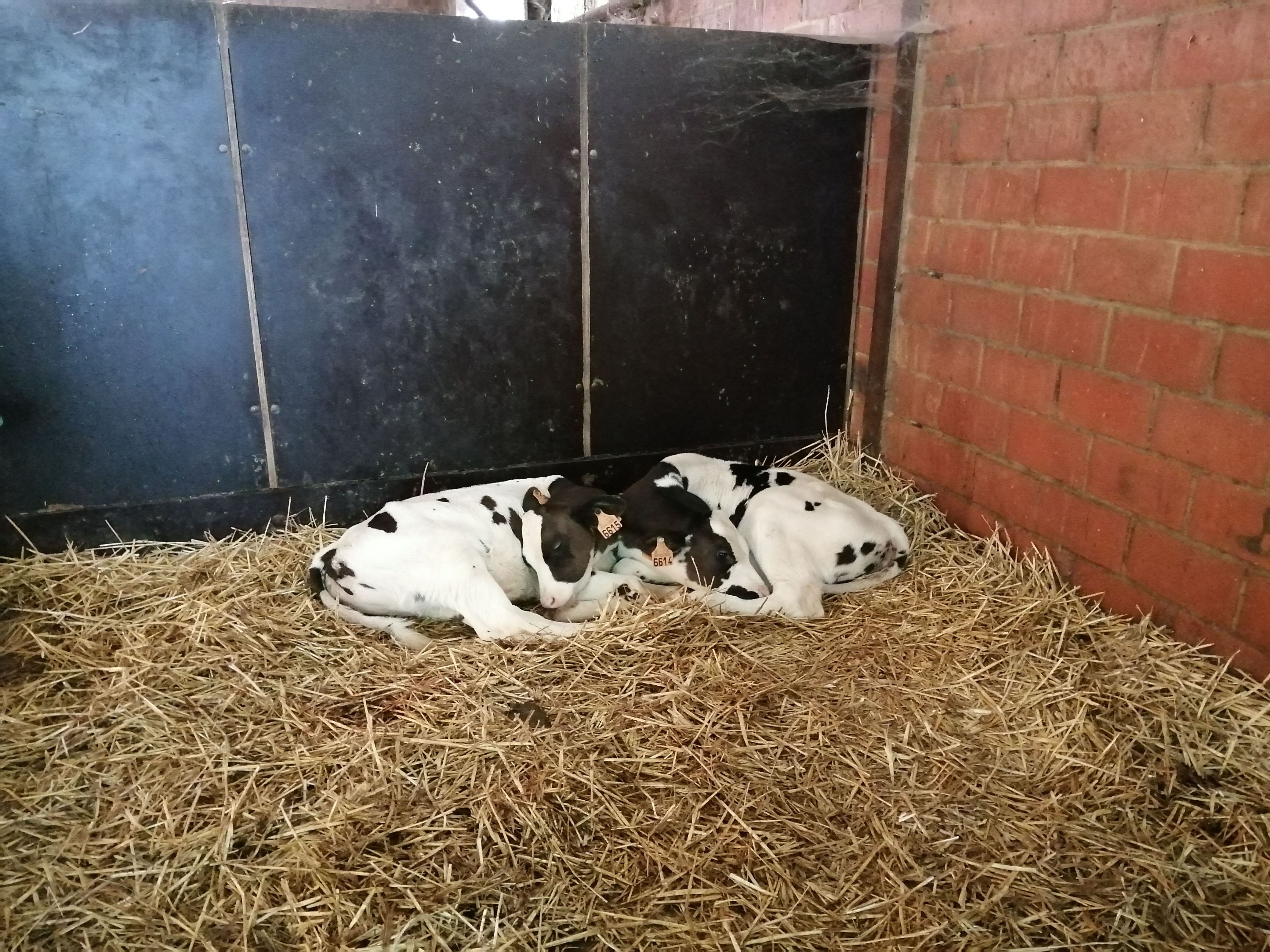 In 2020 werden twee vaarsjestweelingen geboren, waarvan eerst Thelma en Louise in april. Zij waren zo’n mini’s! Ook van hen deelde ik al plaatjes op Facebook. Zoals je op de tweede foto ziet, zaten zij wel wat langer in de grote stroboxen (normaal tot 8 maand). Het hangt er van af of we kunnen doorschuiven want in de winter zit alles mooi vol en gaat doorschuiven pas als er vaarzen gekalfd hebben en er plaats komt in de jongveestal.