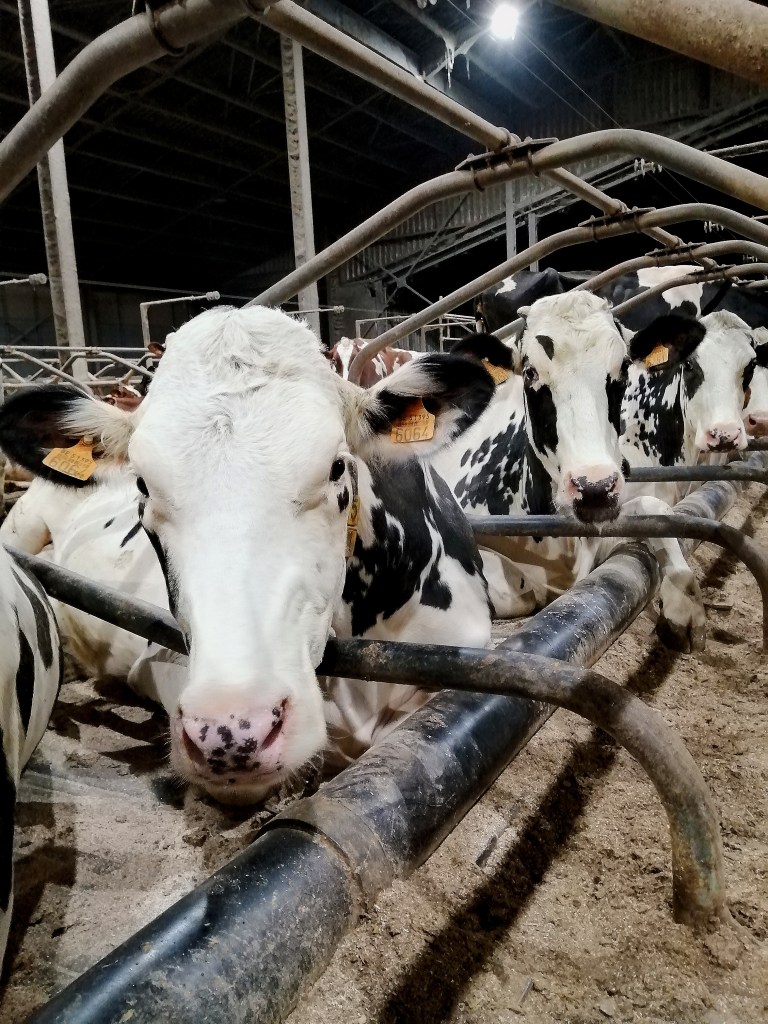 Zo gaat het nu steeds verder, meer en meer nakomelingen via KI. De afstammingen worden steeds mooier. Koe Alaska kalfde intussen op 4 december 2022 voor de derde keer. Dit keer was het wel een kruising met Belgisch witblauw. Haar poten zijn niet (meer) super maar ze geeft wel goed melk. Na twee lactaties van telkens bijna 10 000 liter zit Alaska nu na een goeie 50 dagen aan een daggemiddelde van 45 liter. Hieronder zie je twee foto’s van Alaska.