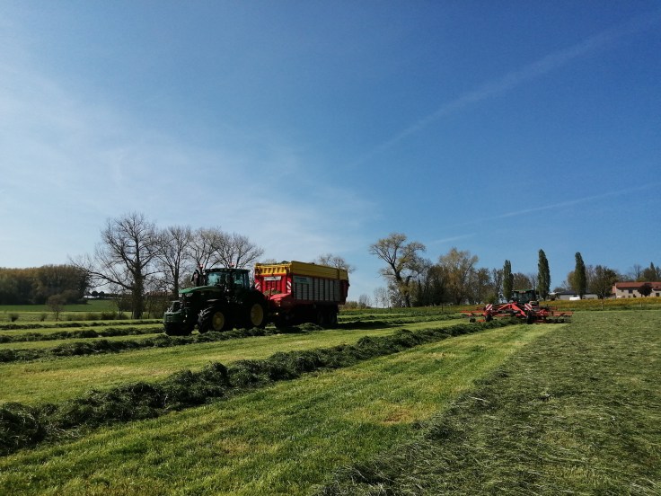 Het was een hele tijd aftellen naar de lente maar uiteindelijk sloeg het weer helemaal om en bleef het in mei elke dag droog. Het werd dan ook een hele drukke maand op de boerderij! Mest uitrijden, rotoreggen, het jongvee naar de weides brengen… Het moest allemaal gebeuren! Maar beginnen deden we met de eerste snede gras oogsten. Verder in dit bericht toon ik foto’s en geef ik meer uitleg.
