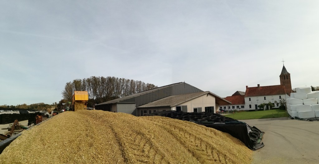 Vorig jaar werd de eerste maïs al gehakseld eind augustus – dat was wel uitzonderlijk! De tweede keer was op 20 september. Nu was de eerste keer op zaterdag 16 september 2023. Een maand later werd de tweede kuil opgevuld. Er bleven tot weken nadien wel nog enkele hectaren maïs staan, die uiteindelijk deels werden gedorsen en deels in MKS-bollen werden geperst. Wij hebben wel nog alles in vrij goeie omstandigheden kunnen oogsten. Want het werd een ongezien nat najaar.