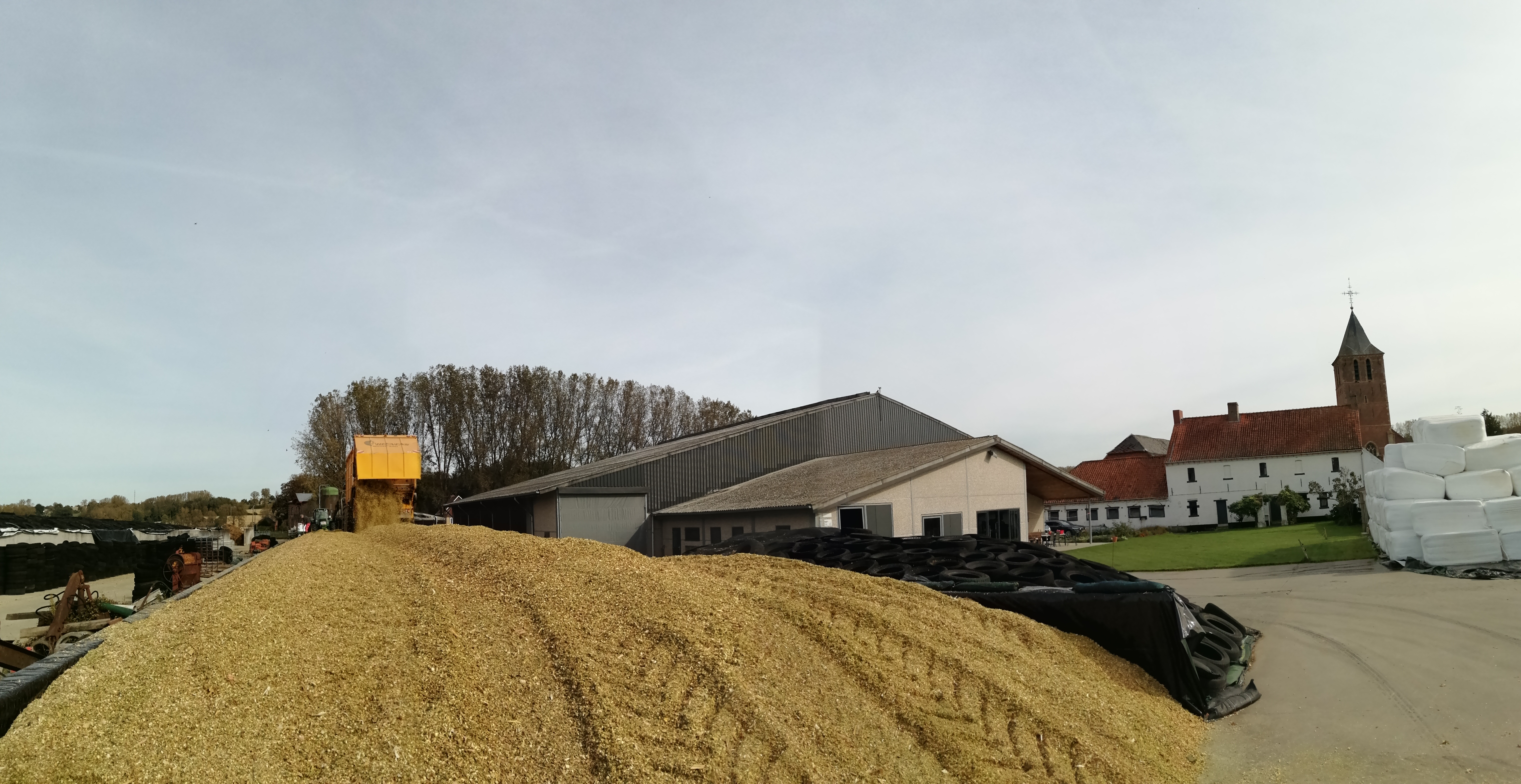 Op zaterdag 16 september begon loonwerken Gheenens ’s ochtends met maïs hakselen. Wij waren de dag voordien al in de weer met het ontbloten van de graskuil, want de maïs komt daar bovenop. Het was mooi, warm weer en met een fijn team ging dit vrij vlot. Gelukkig was de hittegolf net gepasseerd. Het was door dit hete weer in september dat de maïs nu snel was veranderd en rijp genoeg was, want hij was eigenlijk maar laat gezaaid.