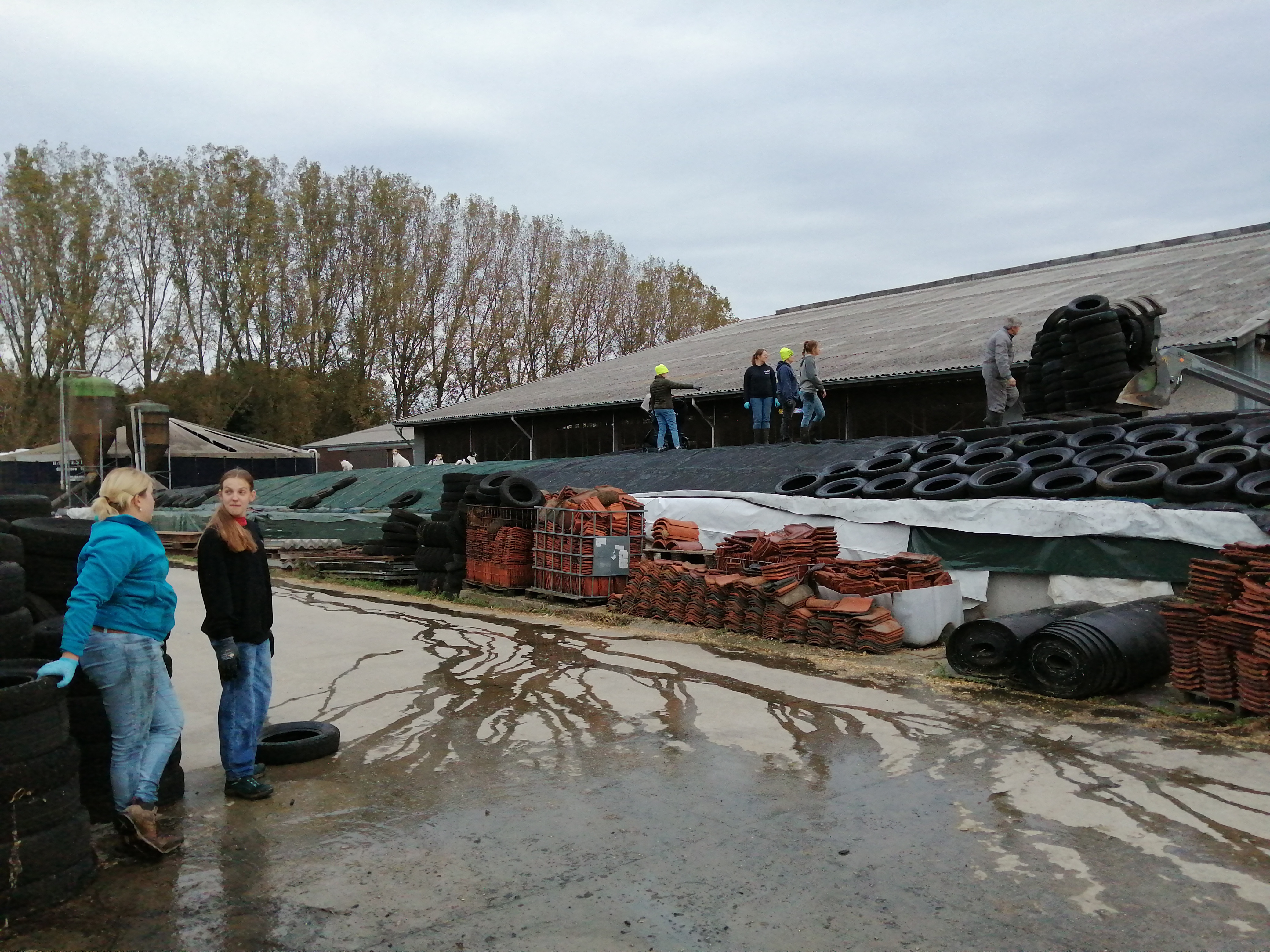 De dag nadien was het zwaarste werk voor ons: de kuil terug afdekken. Gelukkig hebben we een fantastische familie die altijd paraat is, welke dag van de week het ook is. Het is veel aangenamer werken en gewoonweg veel leuker met hen! Bedankt!
