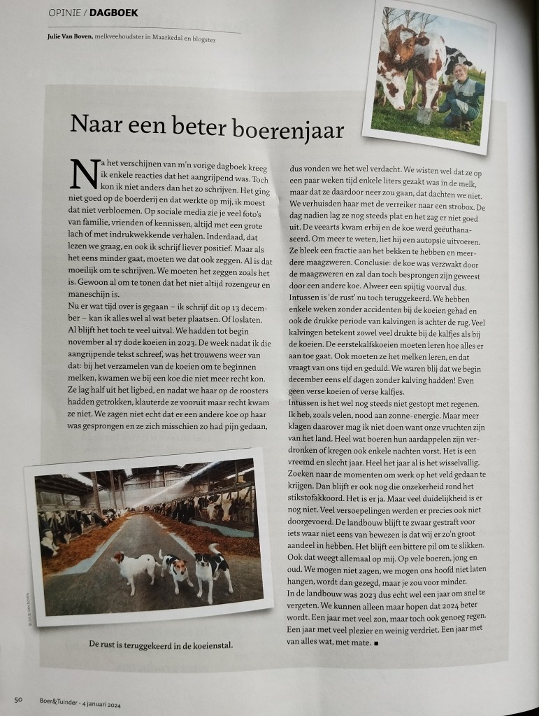 In de landbouw is 2023 dus echt wel een jaar om snel te vergeten. We kunnen alleen maar hopen dat 2024 beter wordt. Een jaar met veel zon, maar toch ook genoeg regen. Een jaar met veel plezier en weinig verdriet. Een jaar met van alles wat, met mate.