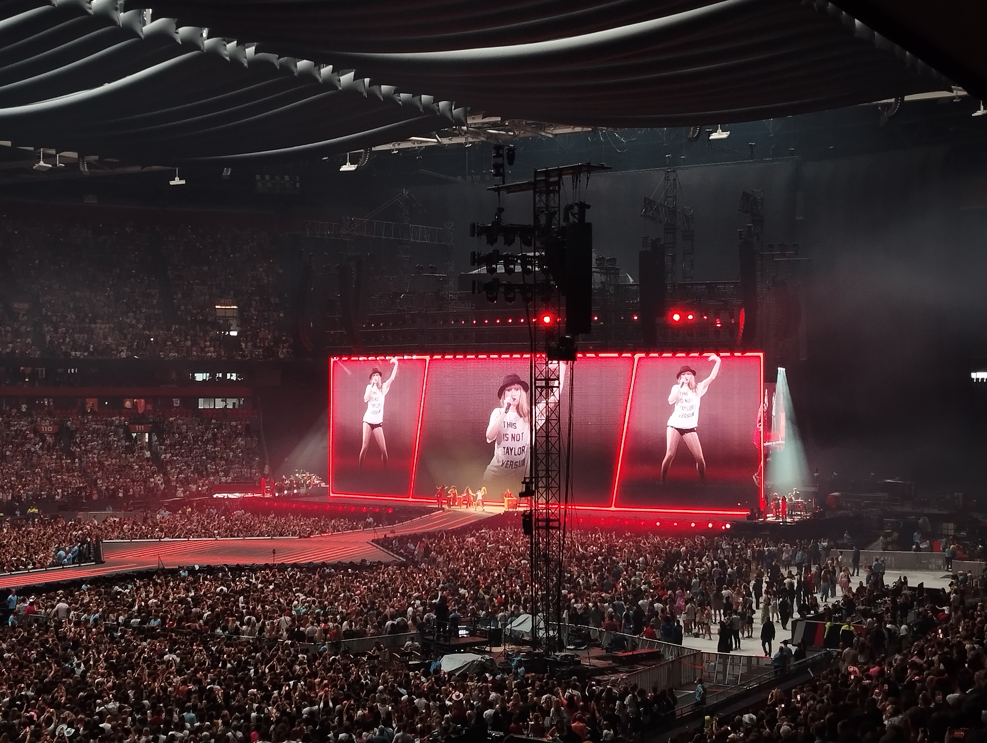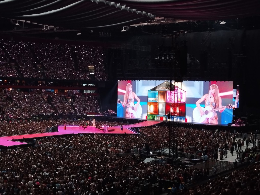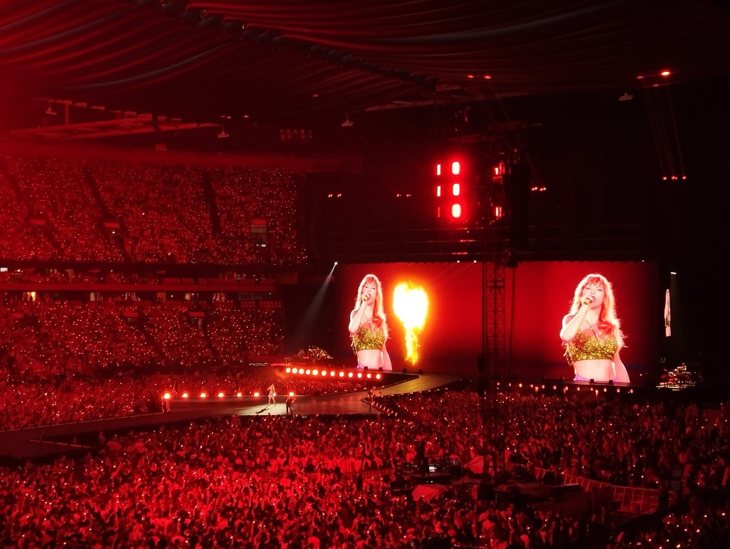 Meer dan 4 miljoen fans registreerden zich om aan tickets te raken voor die 3 shows in Amsterdam, in de Johan Cruijff ArenA, met “slechts” 55 000 plaatsen per show. Erbij kunnen zijn was dus al een wonder, het optreden zelf was magisch! Echt wel heel indrukwekkend! De show duurde ook 3 uur en 15 minuten, wat heel uitzonderlijk is. Alles beschrijven is eigenlijk onmogelijk. Taylor Swift is een icoon. Ze blijft ook maar schrijven en nummers uitbrengen. Toen ze haar tour in Amerika begon, was The Tortured Poets Department, haar laatste album, nog niet uitgebracht. In Europa kregen we die dus ook nog te horen tijdens de show. Ik was toen die liedjes uitkwamen wel niet zo’n grote fan, maar live klonken die precies heel wat beter! Of misschien moest ik ze gewoon een paar keer horen.