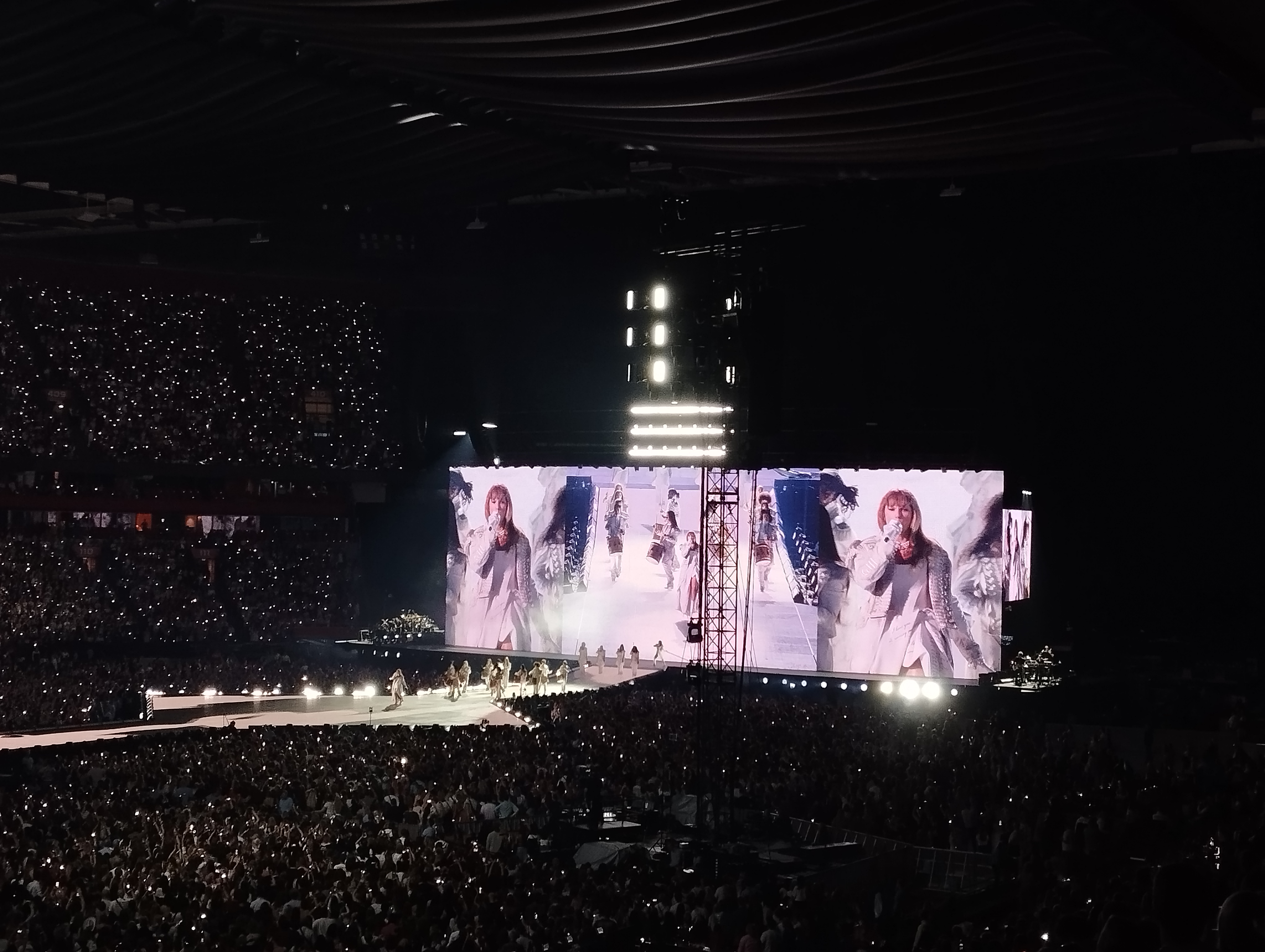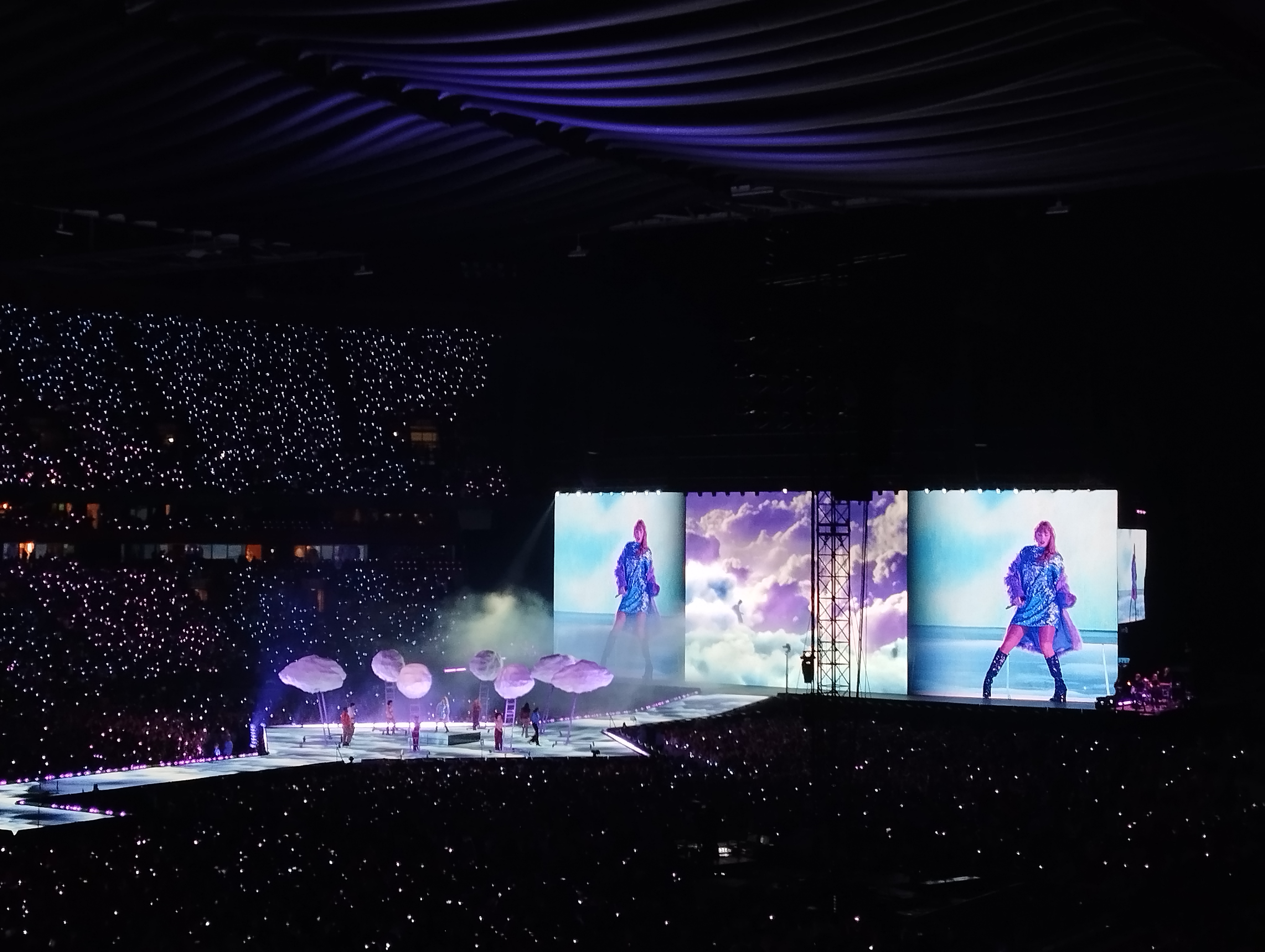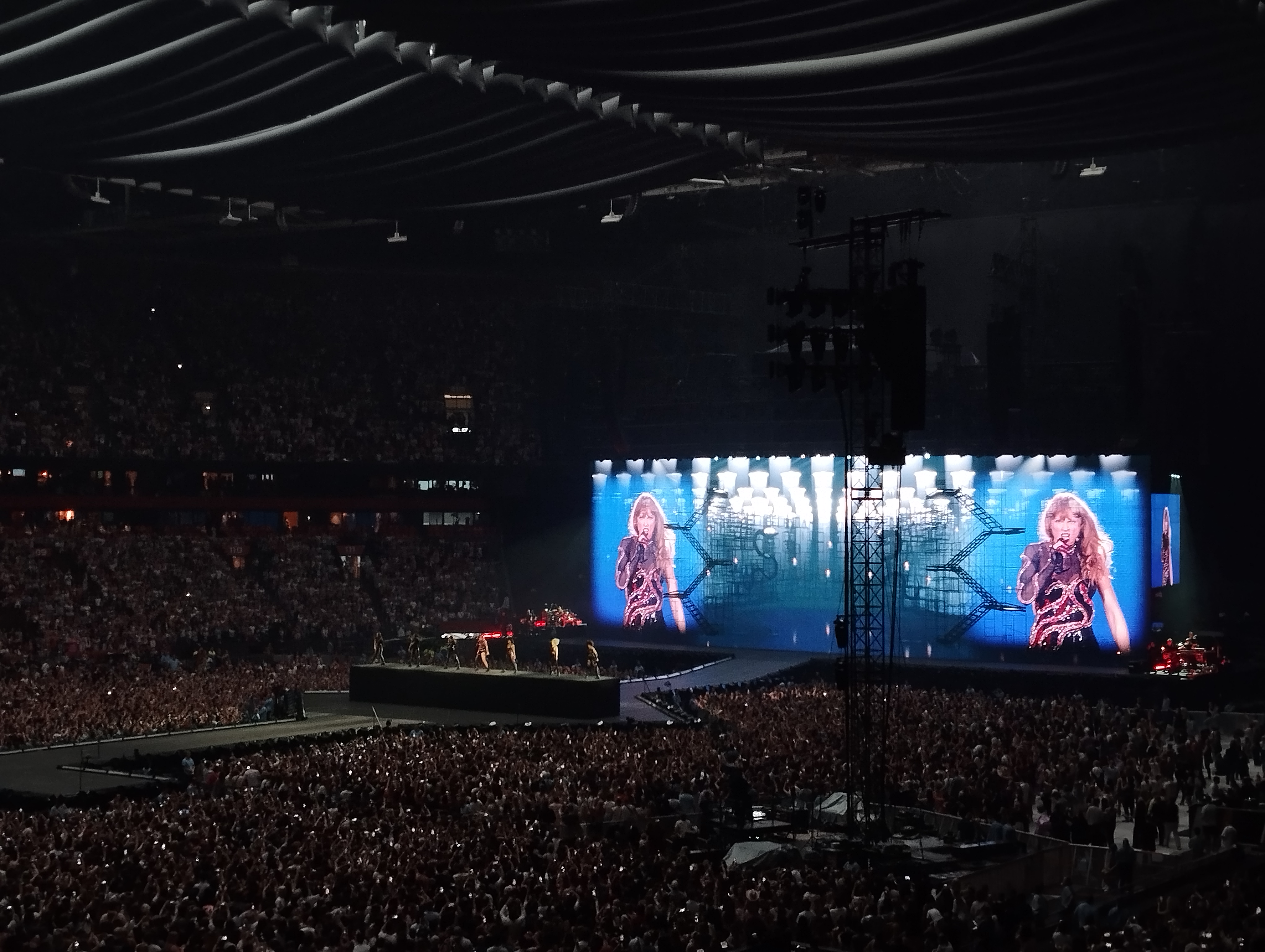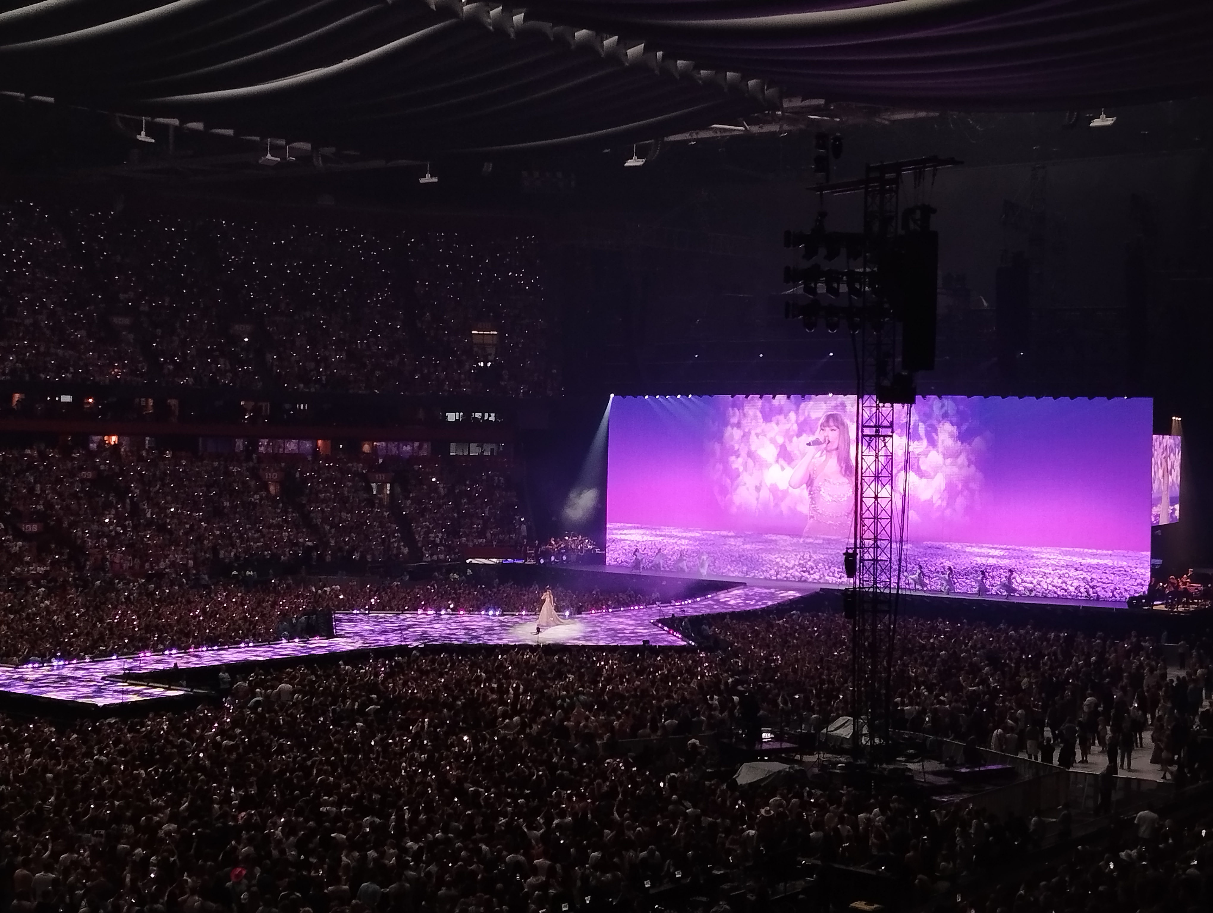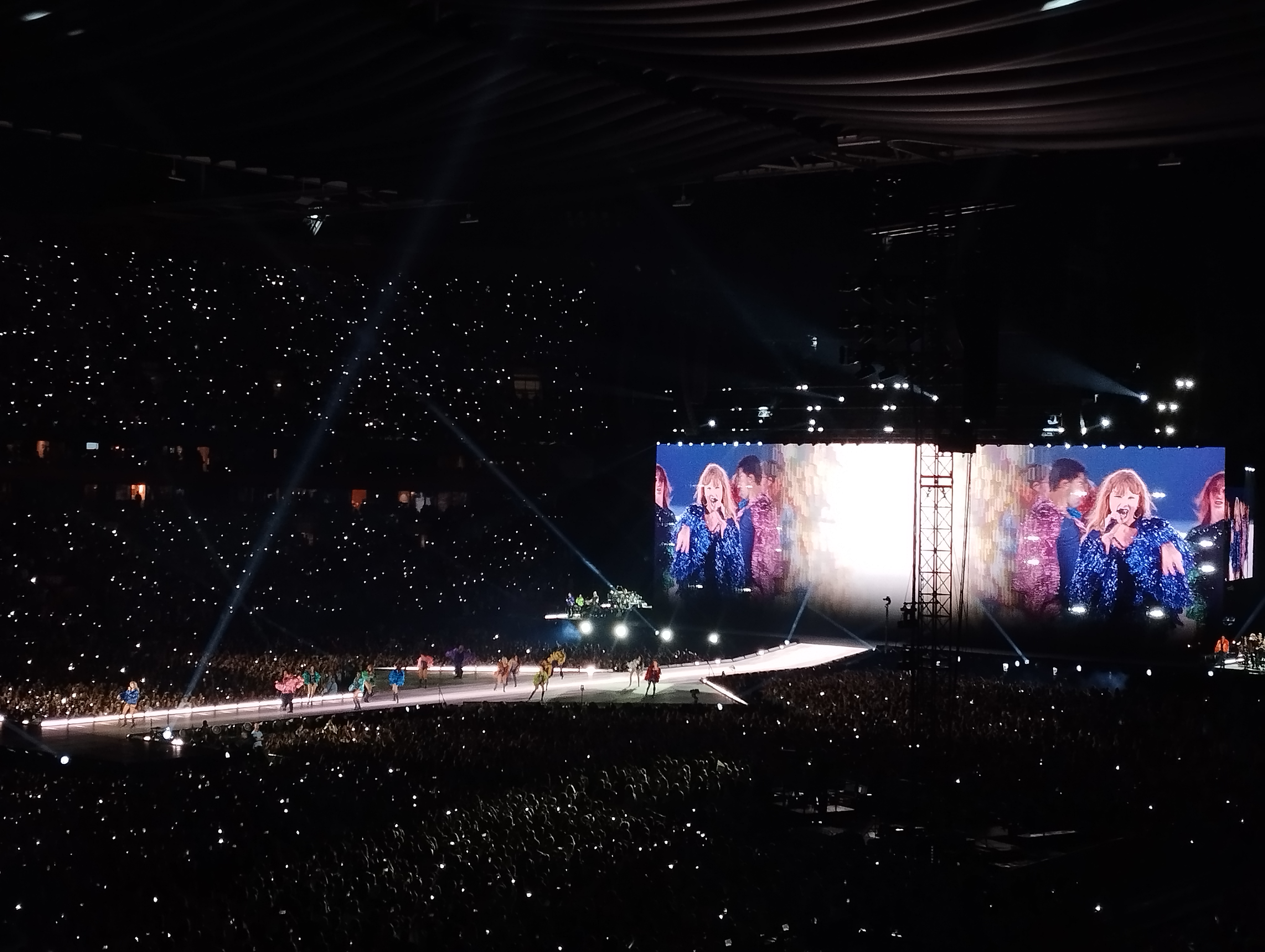 Ik ben heel blij dat ik er bij kon zijn! Ik beleefde dit avontuur samen met m’n beste vriendin Angela (rechts op de foto) en m’n nichtjes Yara en Tessa (de eerste twee linkse). Eigenlijk wel gek, want wij twee schelen 17 en 15 jaar met m’n nichtjes. Zo zie je dat Taylor echt al heel lang meedraait en heel wat verschillende fans heeft! M’n nichtjes zeker nog fanatiekere fans dan wij! Met de nog massalere opkomst van social media kennen zij alle songs en dansjes van voor naar achter en omgekeerd. Het was dus heel uniek om dit epische concert zowel met m’n bestie als met m’n liefste nichtjes te beleven. Heel dankbaar voor dit moment! Nu volgen enkele foto’s, de beste, want ik had er veel te veel! Maar foto’s kunnen het toch niet helemaal vatten, dus met de beste heb je zeker genoeg. Het zijn er 13 geworden, meteen ook het lievelingsgetal van Taylor. 😉