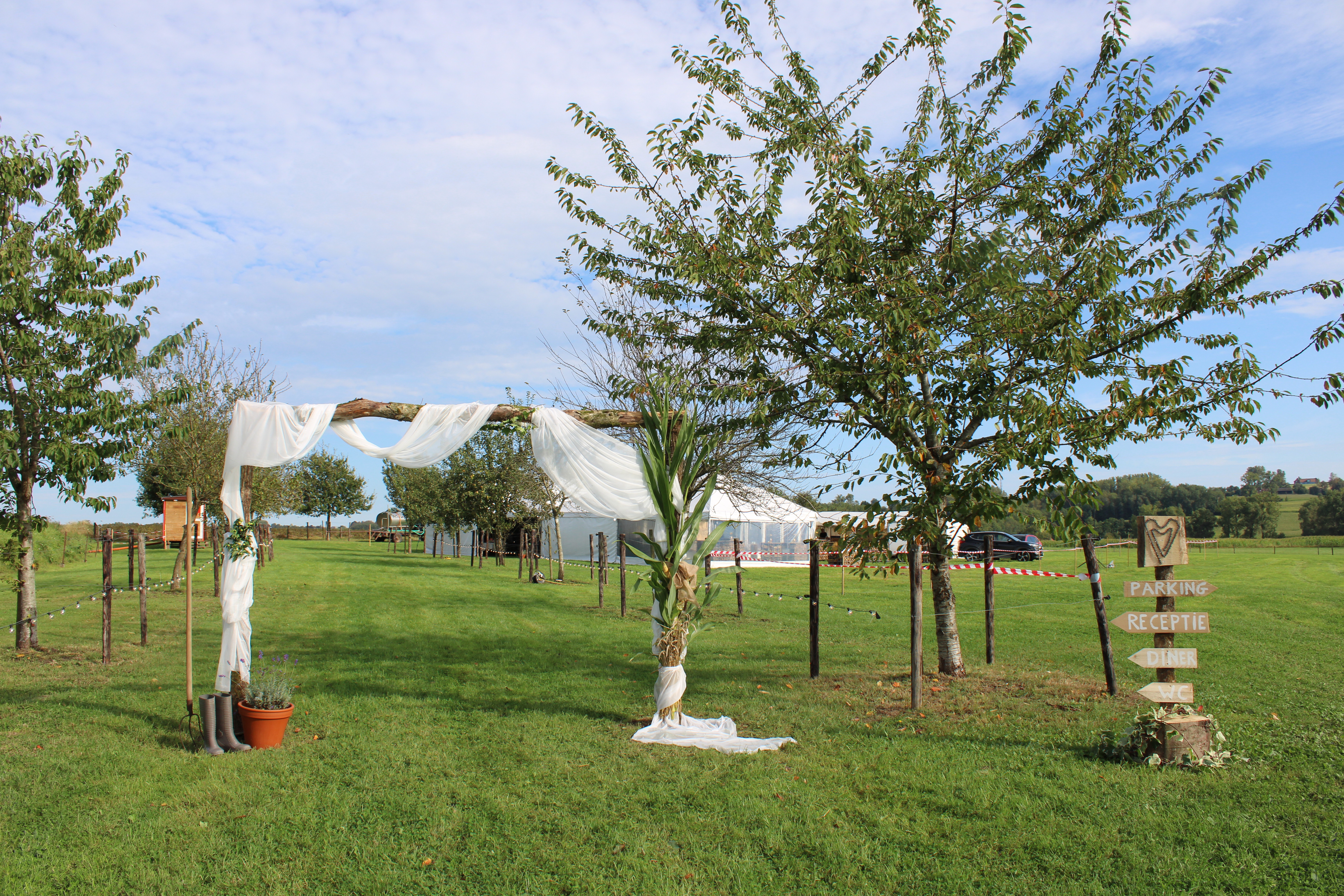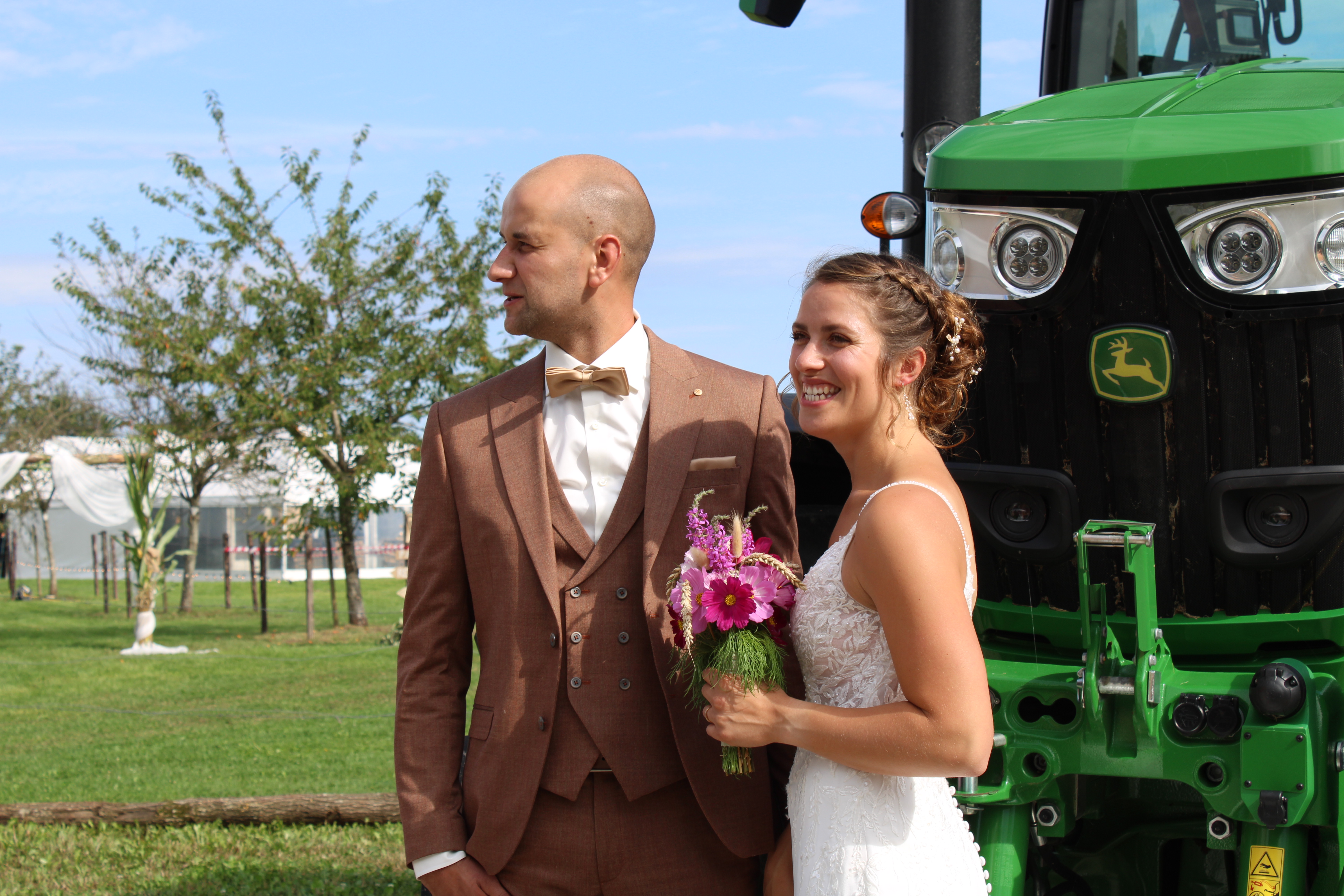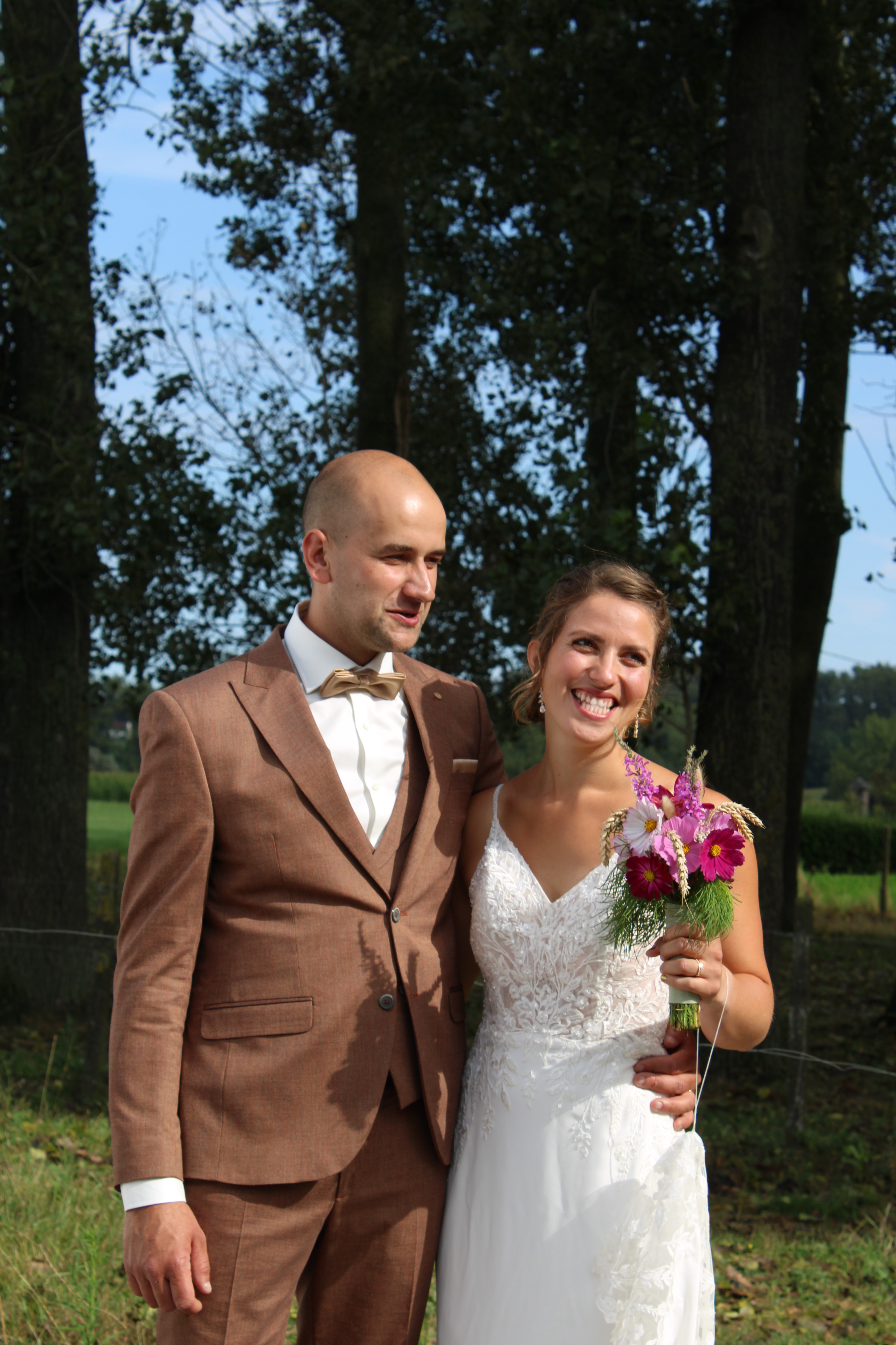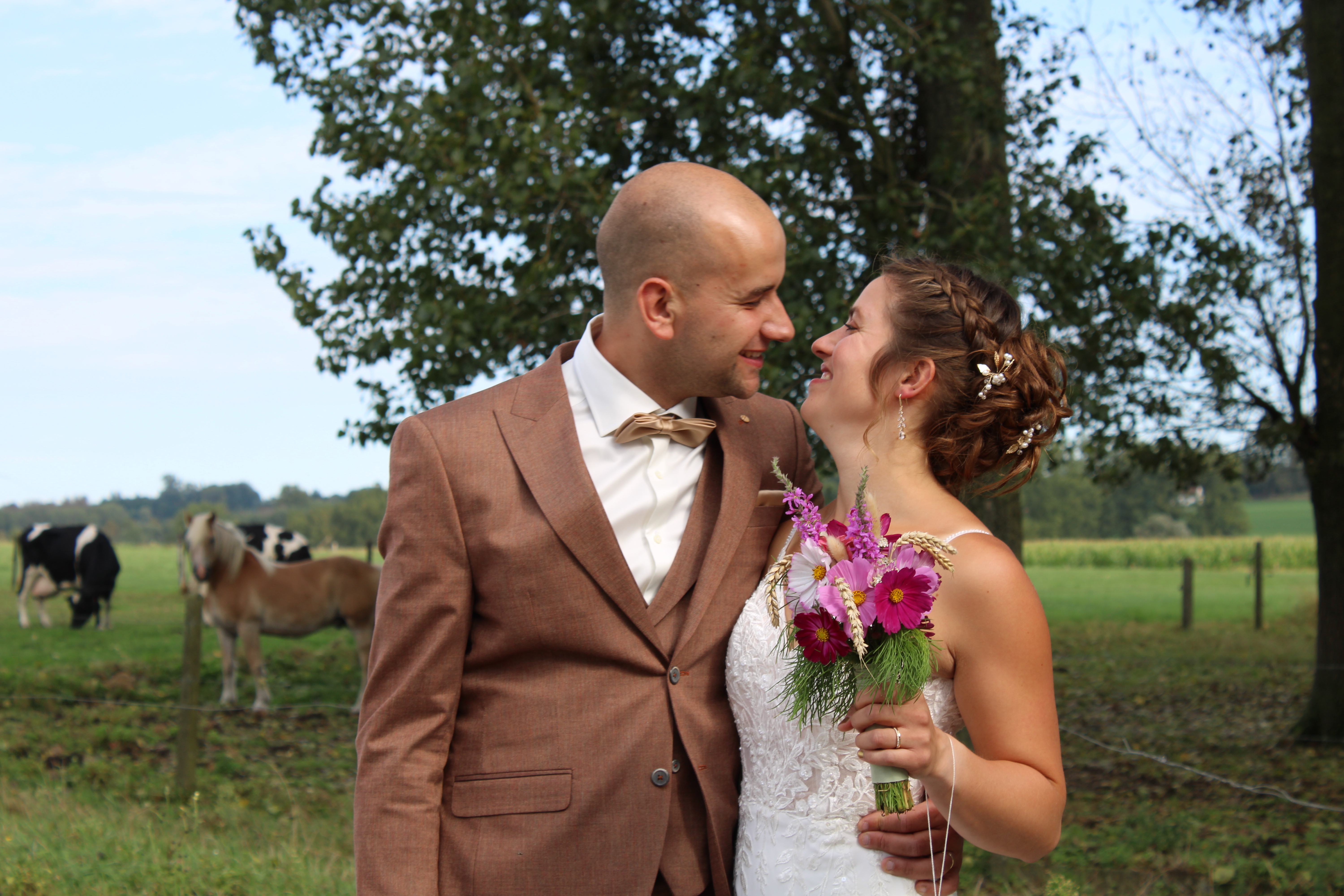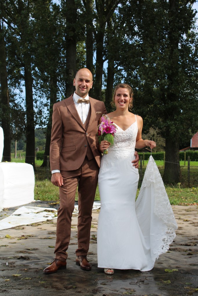 Zowel ik als Jeffreys mama Isabel namen de trouwfoto’s van het koppel. Ik ben best trots op die foto’s, maar het is gewoon een supermooi koppel! Het werden twee prachtige dagen, echt alles zat mee, gelukkig! De foto’s van de feestelijkheden hou ik voor onze familie. Het feest na hun trouw in de kerk vond plaats op de weide aan onze boerderij. Van die magische setting toon ik graag ook enkele foto’s. Stefanie en Jeffrey kregen echt een sprookjeshuwelijk! Alle ideeën bedachten ze zelf, vooral Stefanie dan. Ik ben heel blij dat ik getuige was! Liefde is toch het mooiste dat er is!