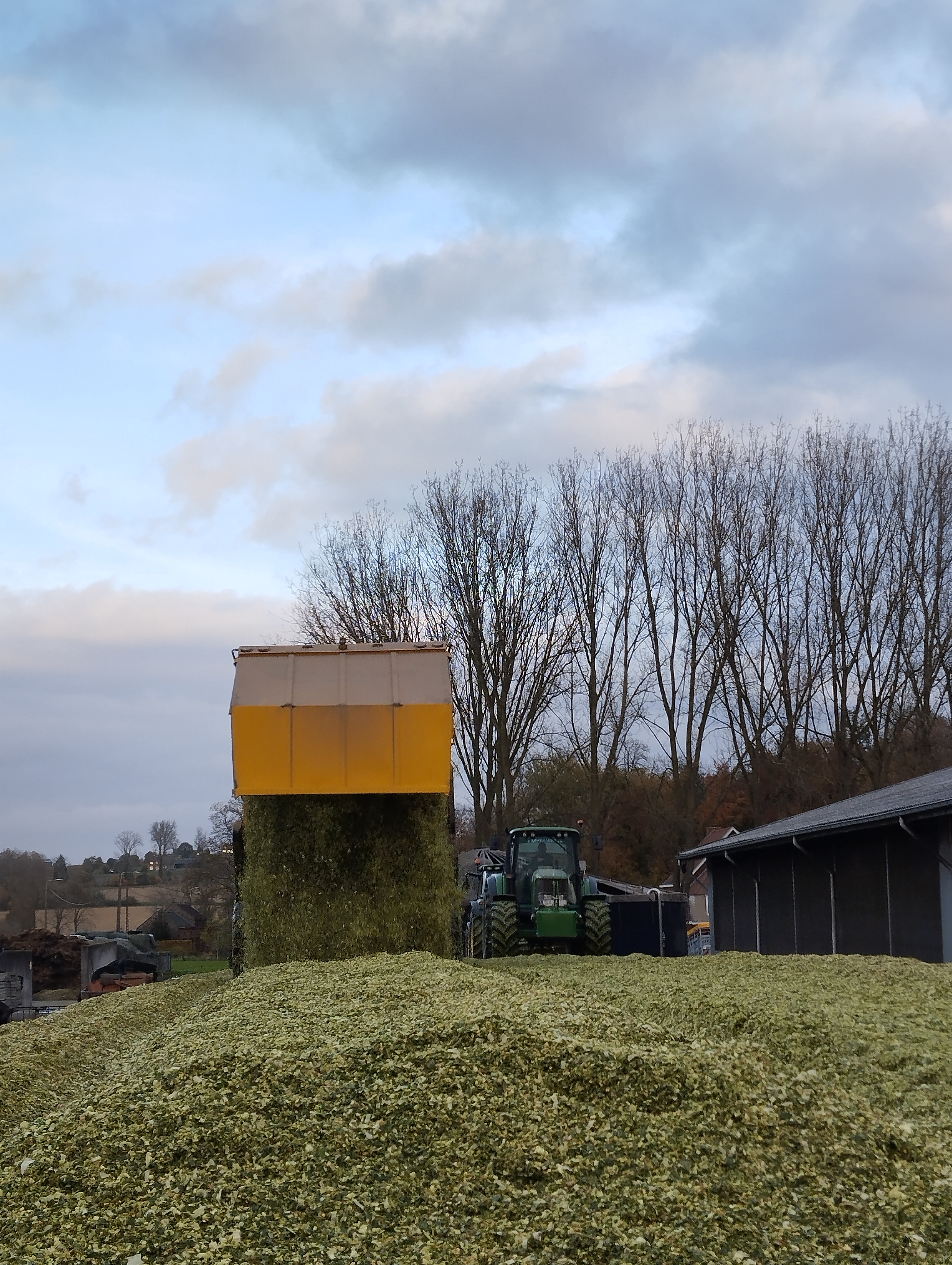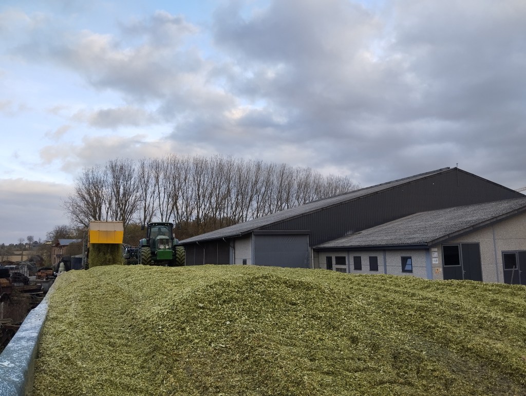 Op 13 november werden dan eerst nog nieuwe plastieken op de muren getrokken en werden de zijkanten opgeveegd hier en daar. We waren net op tijd klaar voor de verse maïs! Het maïs hakselen ging opnieuw vrij vlot, al was het hier en daar wel ploeteren. De straten moesten dus ook weer volop gekuist worden. Na twee goeie halve dagen, raakte er uiteindelijk 17 hectare maïs gehakseld en toegereden in de kuil. Op 15 november tussen 9 en 13 uur was het dan tijd om de kuil af te dekken. We kregen weer heel veel hulp van onze familie, waarvoor ik heel dankbaar ben!