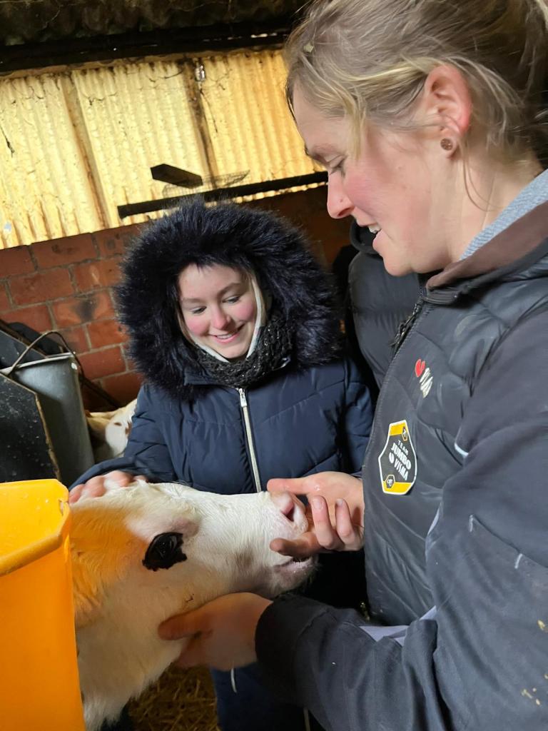 Ze konden op de tractor zitten en reden zelfs eens kort mee met boer Herman. Ook toen ik het voeder afdraaide, reed er eens iemand mee met mij. Iets uniek voor hen! Ze gingen ook bij de kalfjes (waar ik ook even kwam vertellen) en later ook bij de carrousel kijken. Een leerrijk en plezierig bezoek! We zijn blij dat we dit af en toe eens kunnen doen.