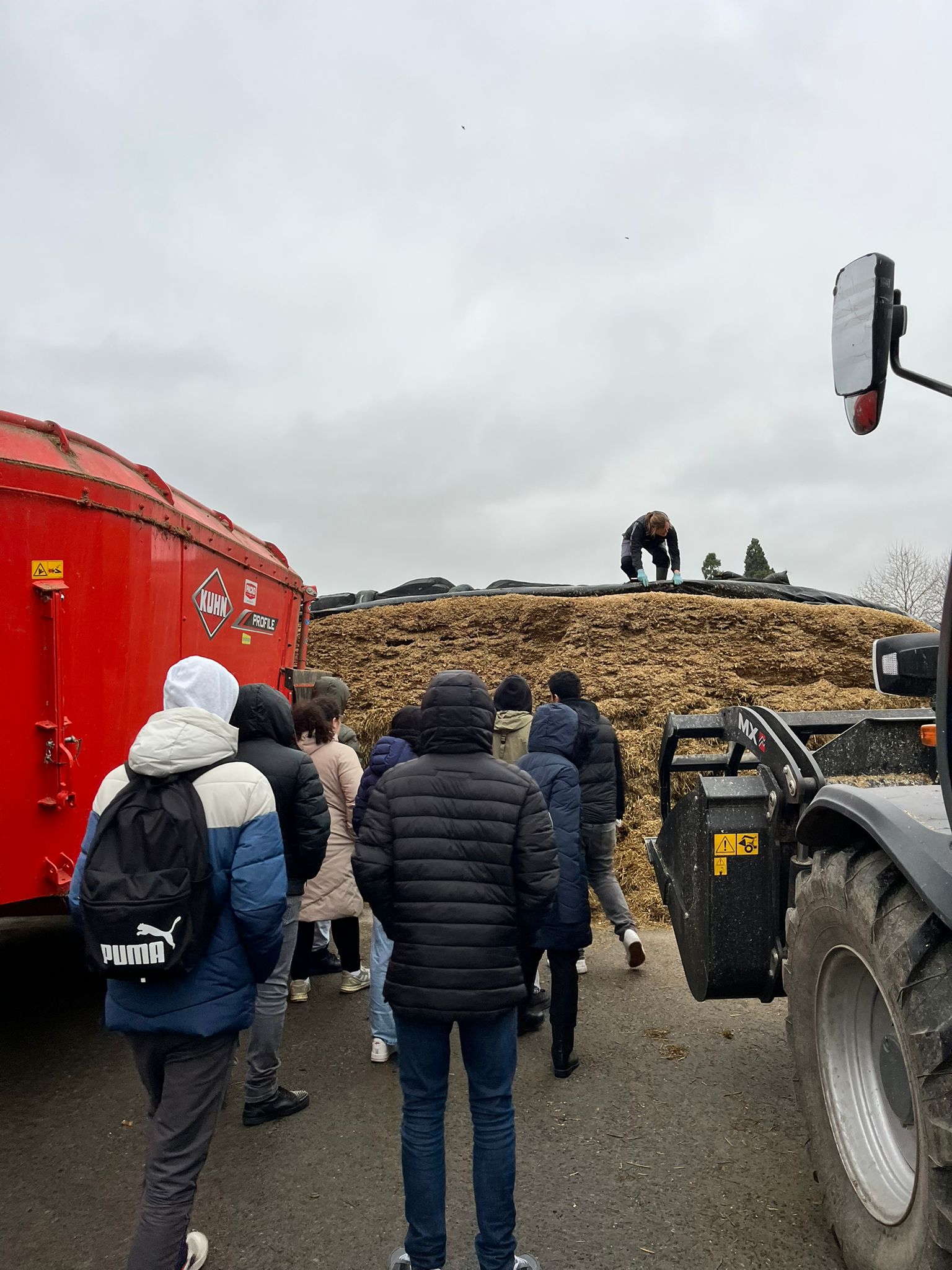 Op woensdag 4 december werd 1 camion geleverd, op zaterdag 7 december werden er 6 camions perspulp geleverd! Boer Herman heeft dan heel wat werk met de verreiker want er moesten 4 camions verschept worden om op de juiste plaats te komen. Een beetje aanrijden met de tractor kan maar meestal doen we het gewoon door er zelf wat door te trappelen en met een hark nog wat effen te trekken. Ik postte in 2019 en 2020 al eens een bericht hierover: Perspulp ingekuild en Perspulp ingekuild, jongvee op stal.