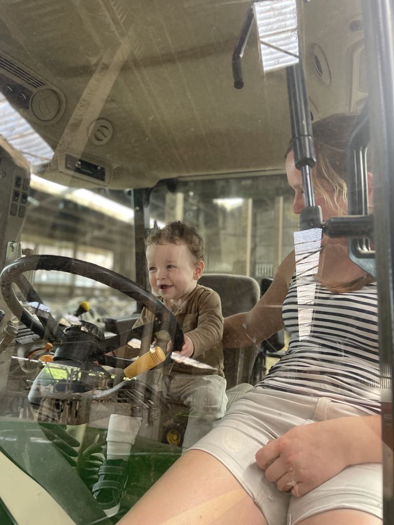Vooral op de tractor zitten doet hij graag. Zelf achter het stuur zitten en doen alsof. Af en toe rijdt hij eens mee met mij terwijl ik aan het voederen ben of voeder aan het bijschuiven ben. Wij deden dat vroeger ook als we klein waren, en m’n nichtjes reden een paar jaar terug ook regelmatig mee met mij. Victor kan nog niet zo veel woordjes zeggen, maar tractor is er wel één van. Zalig, toch! Hier krijg je nu gewoon zalige foto’s, zonder uitleg, want de foto’s zeggen genoeg.