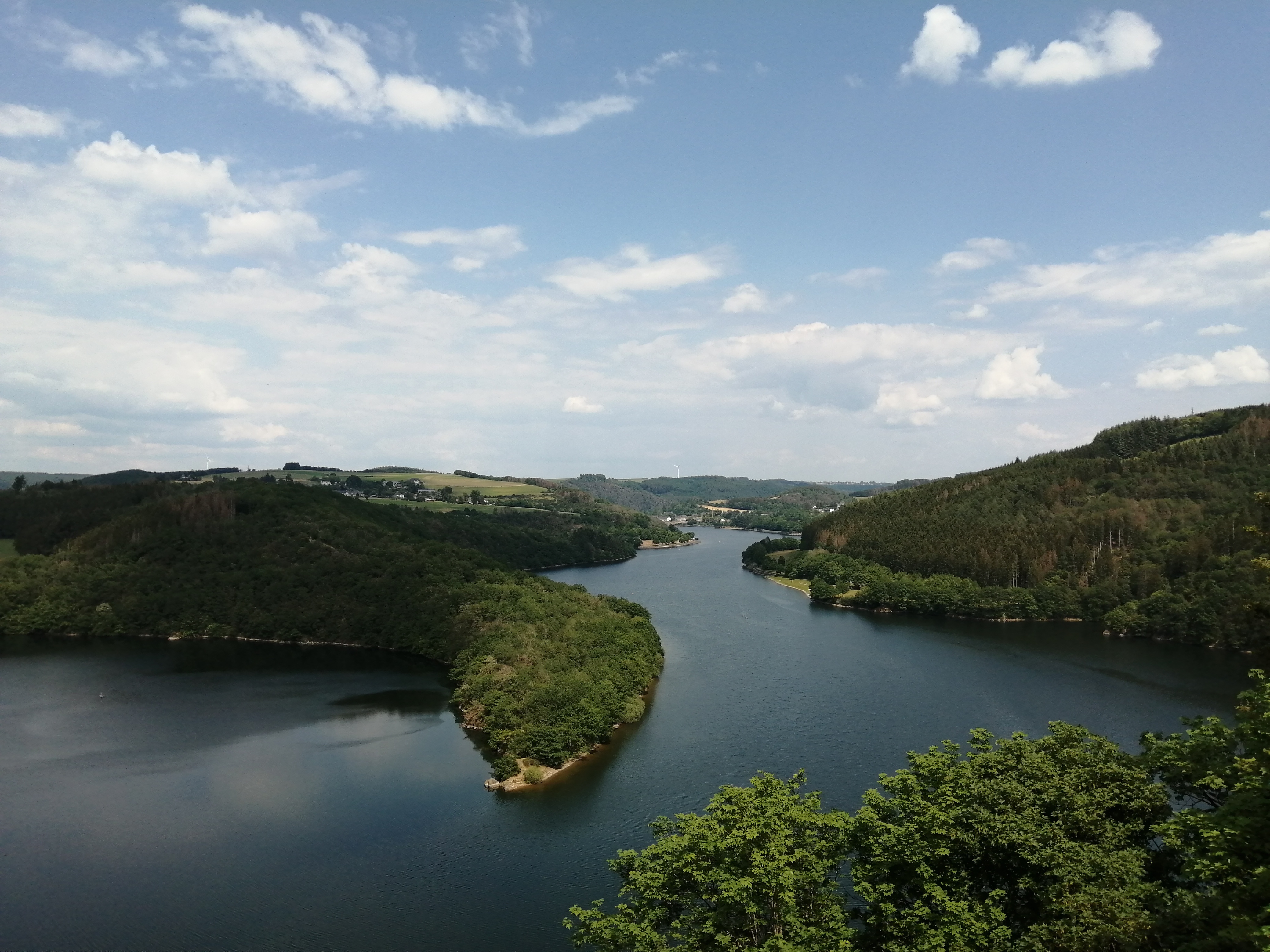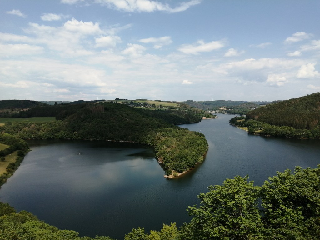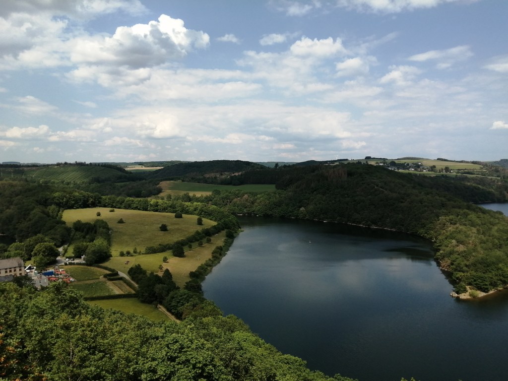 Het uitzicht vanaf het Belvédère de Burfelt is echt prachtig. Je ziet het blauwe water van het kronkelende meer. Al is het eigenlijk ook een rivier. Je hebt de groene bomen en de groene omgeving met weinig bebouwing. Het is echt heel rustgevend. Onderstaande foto’s tonen meer dan ik kan zeggen.