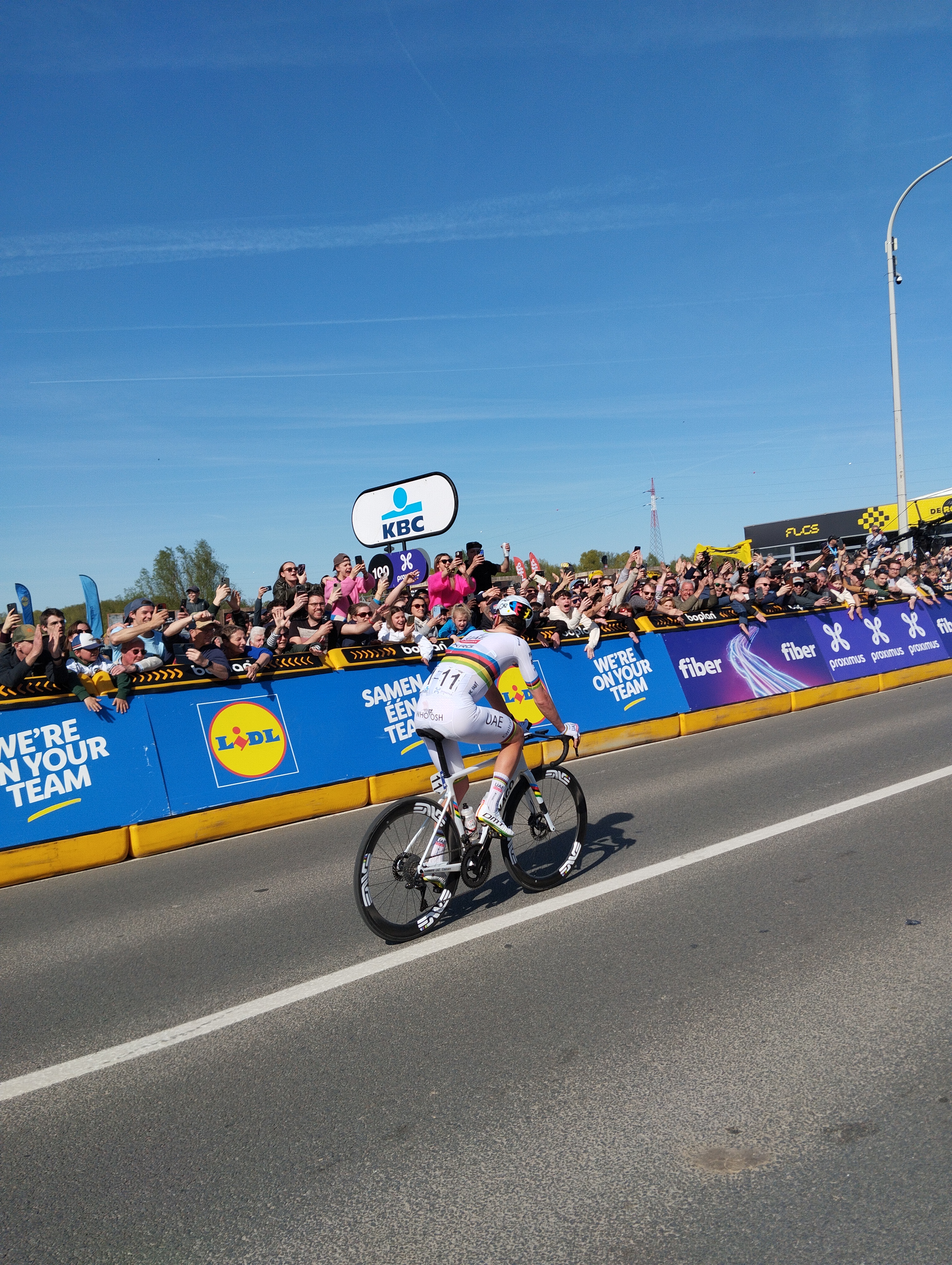 Wereldkampioen Tadej Pogacar maakte z’n favorietenrol helemaal waar en won voor de tweede keer Vlaanderens Mooiste! Mads Pedersen sprintte uiteindelijk naar de tweede plaats, voor Mathieu van der Poel en Wout van Aert. Op grote schermen kan je trouwens de wedstrijd ook zien. Of op je smartphone lukt dat uiteraard ook. We hebben er op en top van genoten! Veel liefde voor de koers, en veel liefde voor m’n nichten Yara en Tessa (intussen 16 en 19 jaar)!