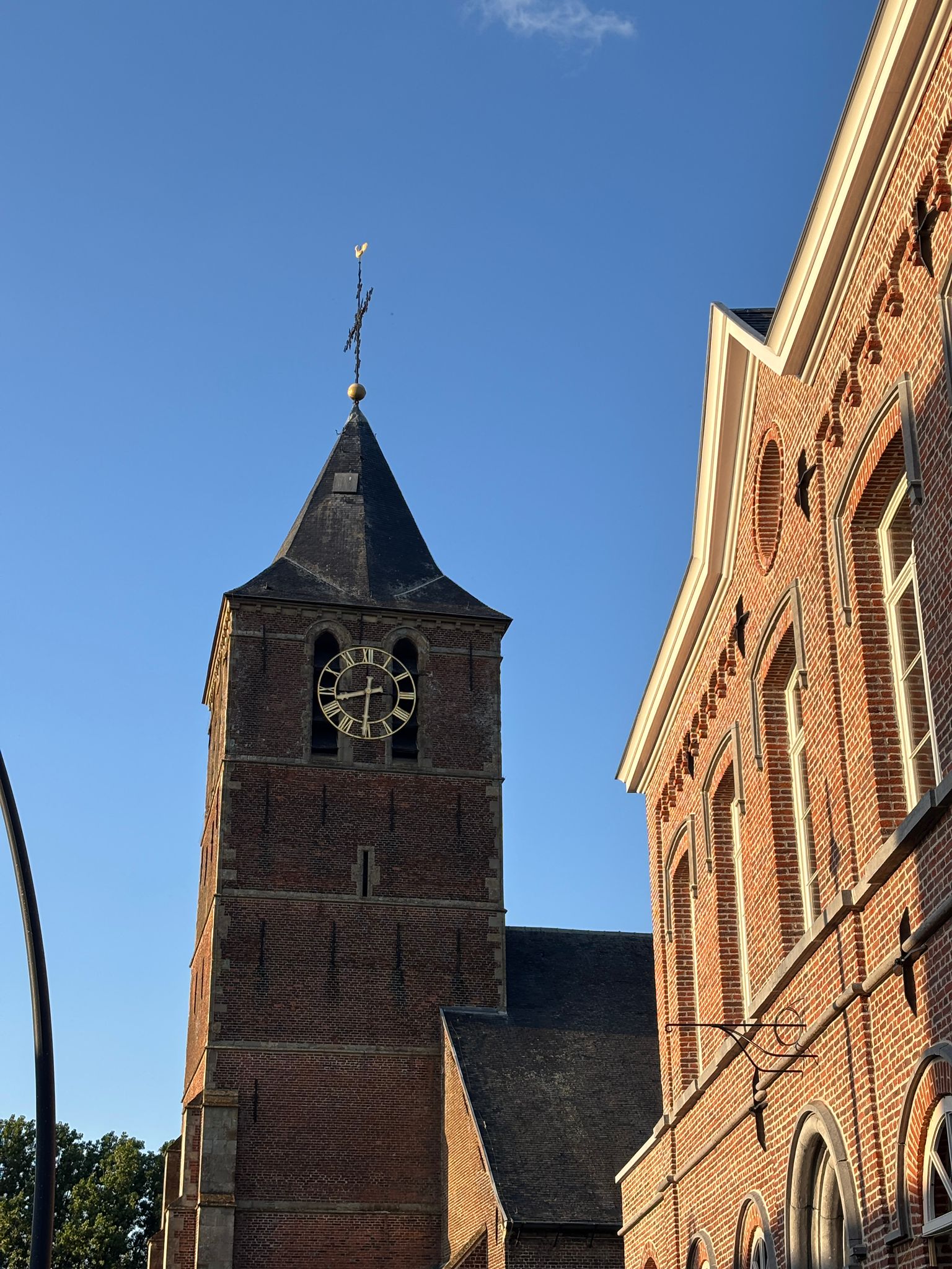Ik ging begin juni ook nog eens wandelen met m’n maatje Matthias. Het was al even geleden, waarschijnlijk van ons zot avontuur: Wandelen langs de gemeentegrens van Maarkedal. Die indrukwekkende 41 km dateert van een goeie 9 maand geleden. Op deze rustige avond kozen we voor een korte wandeling van een 5-tal kilometer. Matthias nam prachtige foto’s, die ik hier toon aan jullie. Op deze eerste drie: de kerk, de pastorie en de woning aan de kasteelmolen. Deze staan beschreven in een eerder bericht: Het beste van Schorisse.