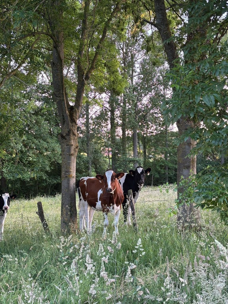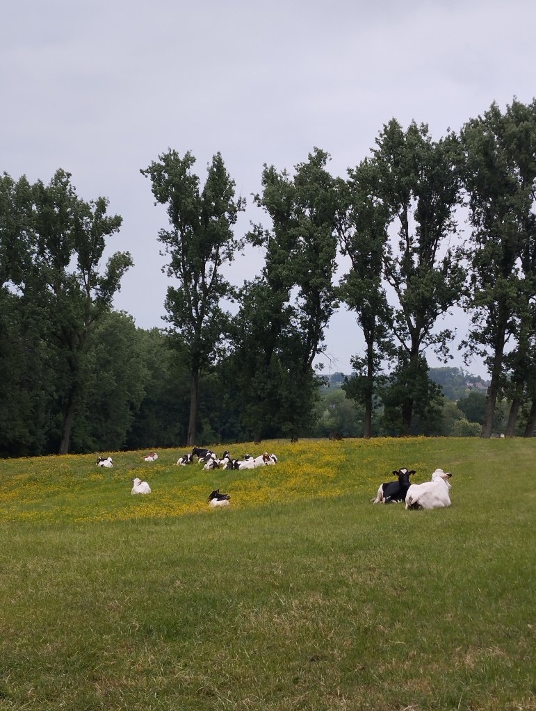 De zwart-witte en rood-witte koetjes op bovenstaande foto’s zijn er van onze boerderij. Maar er zijn in onze streek vooral ook veel runderen van het Belgisch Witblauwe ras in de weides terug te vinden. Die weides hebben vaak hellingen, waardoor ze niet (gemakkelijk) kunnen gemaaid worden en dus uitsluitend gebruikt worden voor begrazing. Wanneer er geen wandelpad door de weide gaat, is het ook niet de bedoeling er te gaan doorlopen. Ik schreef eerder het bericht: Dit doe je beter niet bij runderen op de weide.