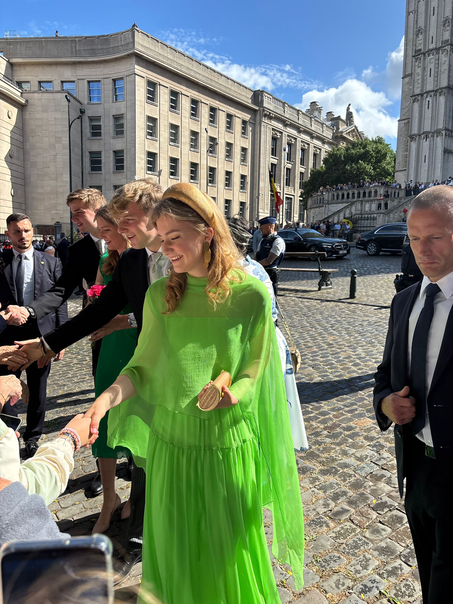 Na de dienst kwam het Koninklijk Gezin samen de trappen af en namen ze uitgebreid de tijd om het volk te groeten. Zo hebben we Hunne Majesteiten de Koning en de Koningin een hand geschud en een fijne feestdag gewenst. Ook hun kinderen, de prinsessen en prinsen van België, hebben ons begroet. Ik vond het heel indrukwekkend dit ritueel te zien en te mogen ervaren.