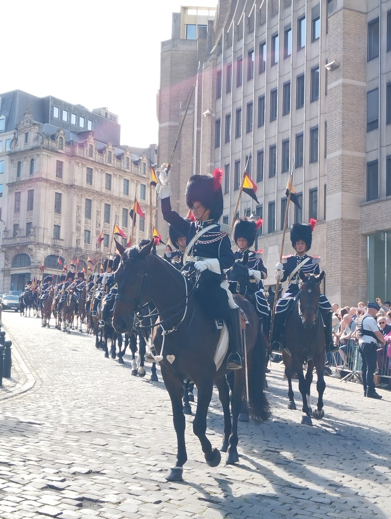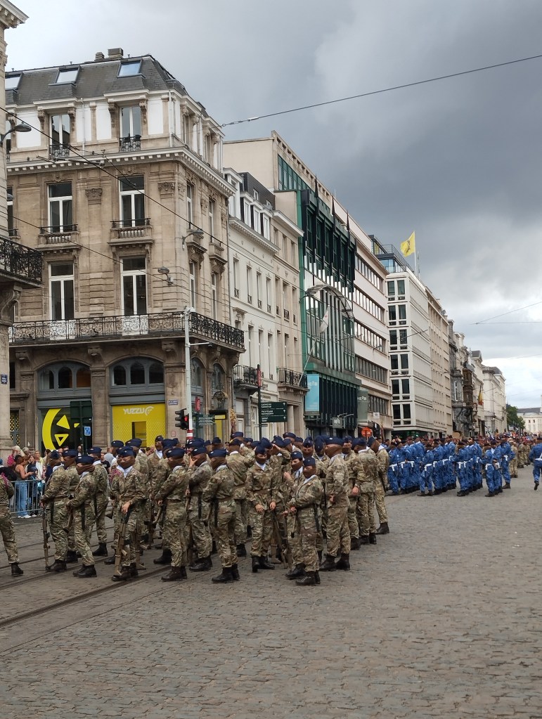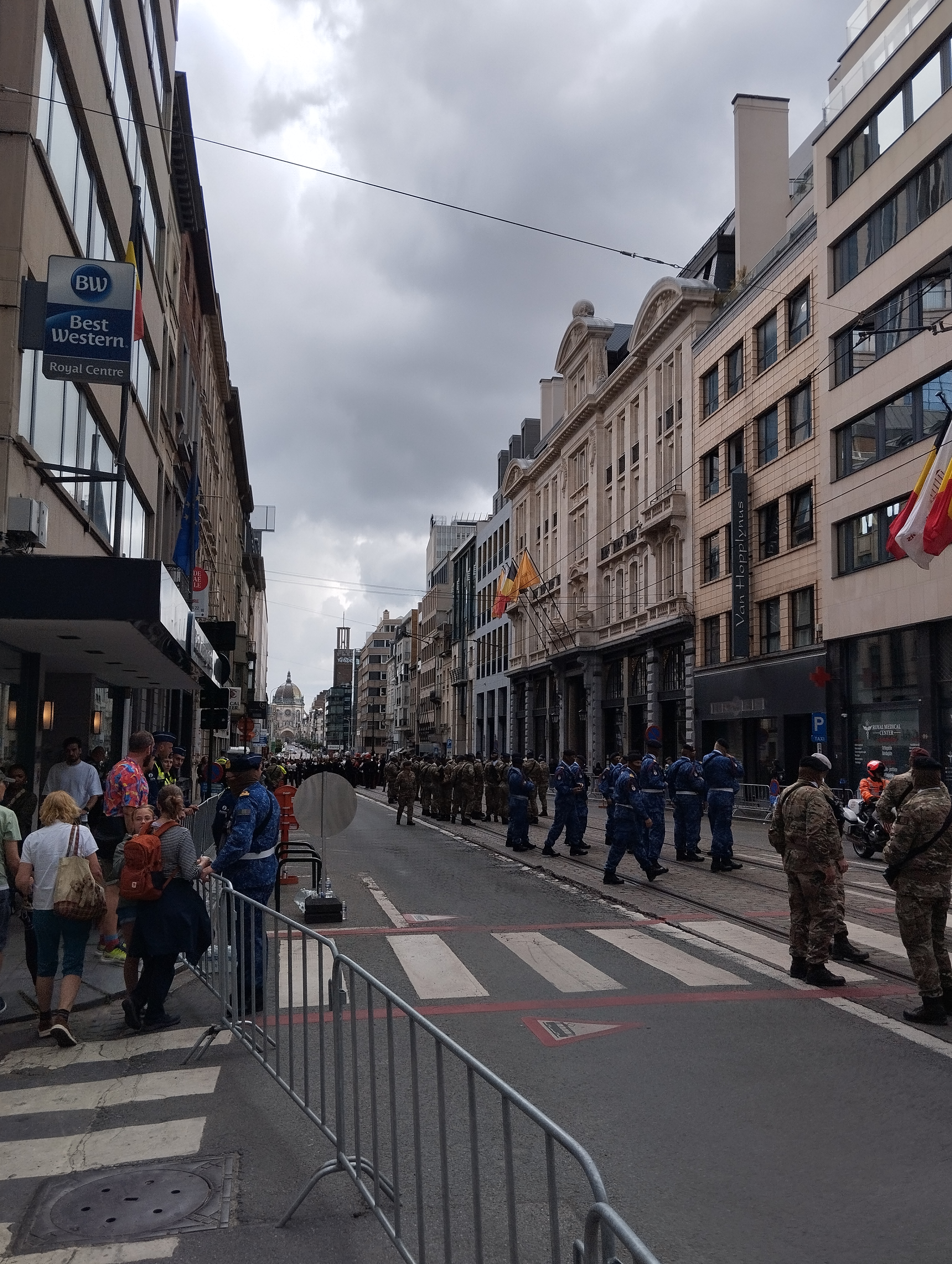 Later zagen we hoe iedereen zich klaarmaakte voor de nationale defilé, dat om 15 uur zou beginnen. We namen dit keer niet de tijd om deze te bekijken, maar misschien één van de komende jaren eens. We konden wel nog prins Gabriël spotten, want hij liep ook mee met de Koninklijke Militaire School, waar hij les volgt.
