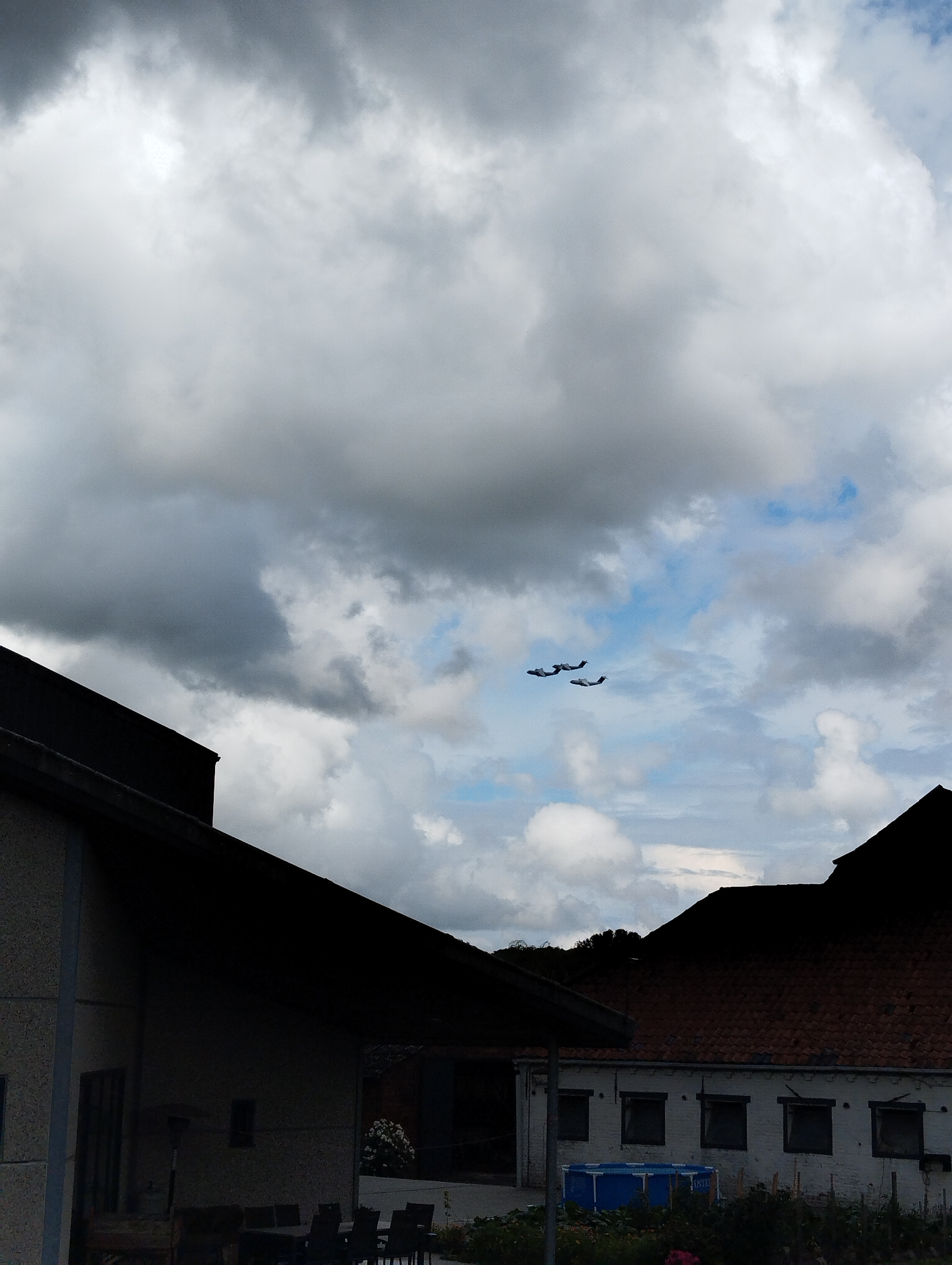 Om 16 uur waren we terug in ons geliefde Maarkedal. Hier zagen we nog de vliegtuigen overcirkelen die dan koers namen naar Brussel voor de nationale defilé. Nog eventjes nagenieten en daarna was het terug aan het werk want om 18 uur moeten de koeien nog gemolken worden.