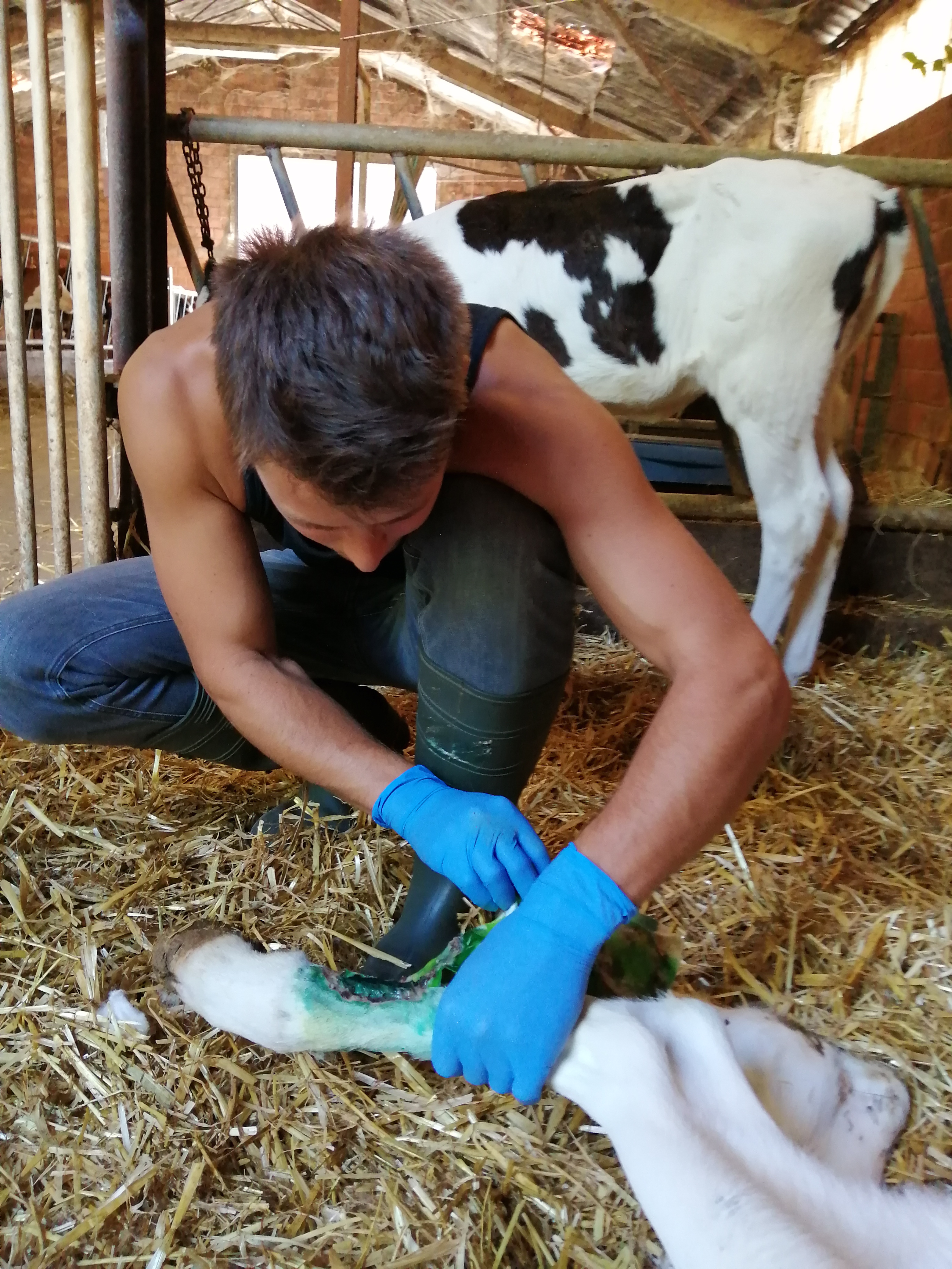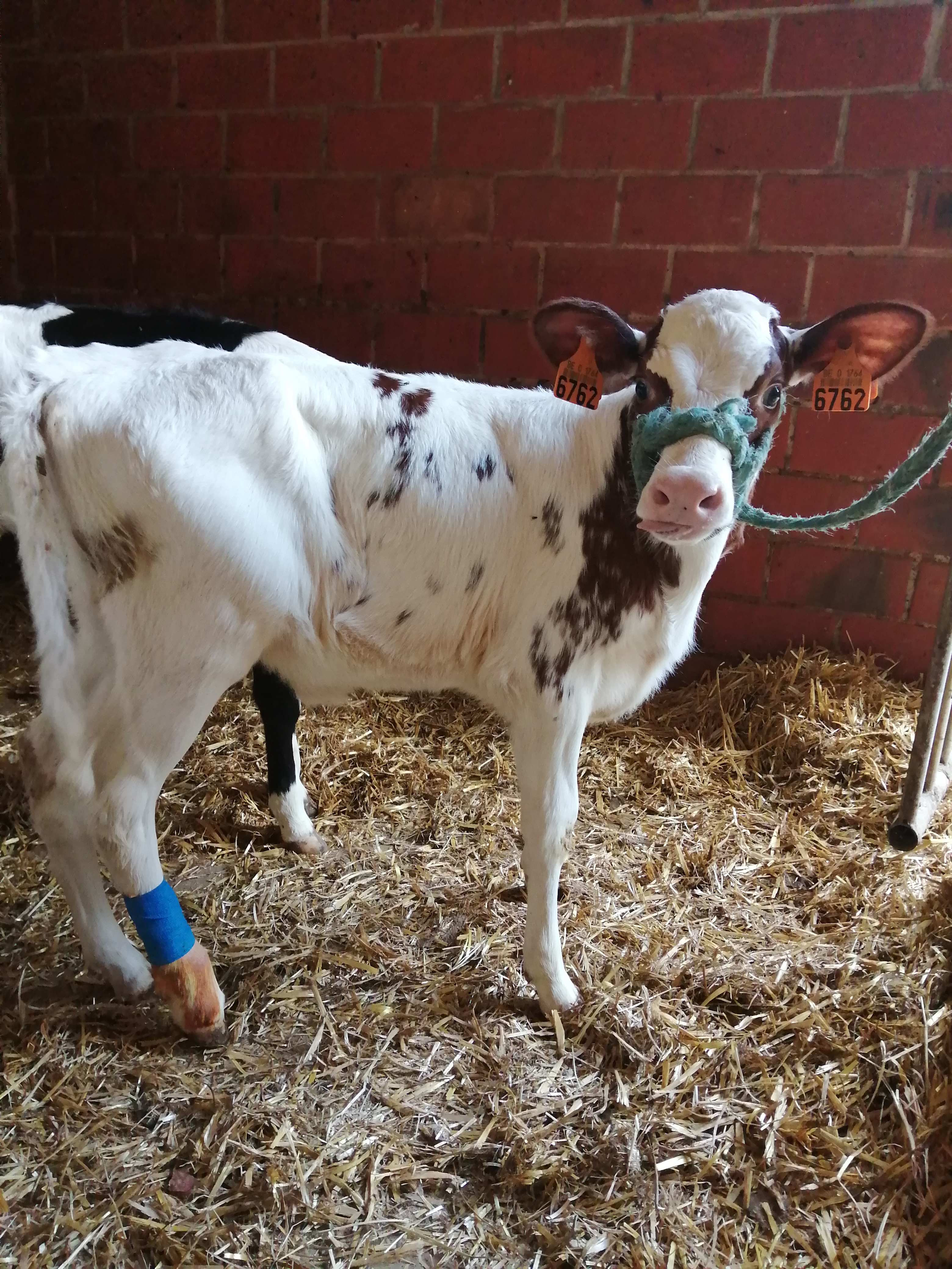 Het verhaal van koe Serena is eigenlijk wel een wonder te noemen. Als kalf raakte zij ernstig gekwetst aan haar poot. Ze kwam ’s nachts vast te zitten tussen twee balken en heeft getrokken en gesleurd maar kreeg haar pootje niet meer los. ’s Ochtends troffen we ze aan, met wonden aan beide kanten van haar poot tot op het been. Gelukkig was het been niet gebroken, want anders was het meteen gedaan. Zo’n open beenbreuken zijn bijna niet te genezen en de “beste” optie is dan euthanasie. Nu probeerden we de wonden te genezen, maar we wisten dat het moeilijk zou zijn.