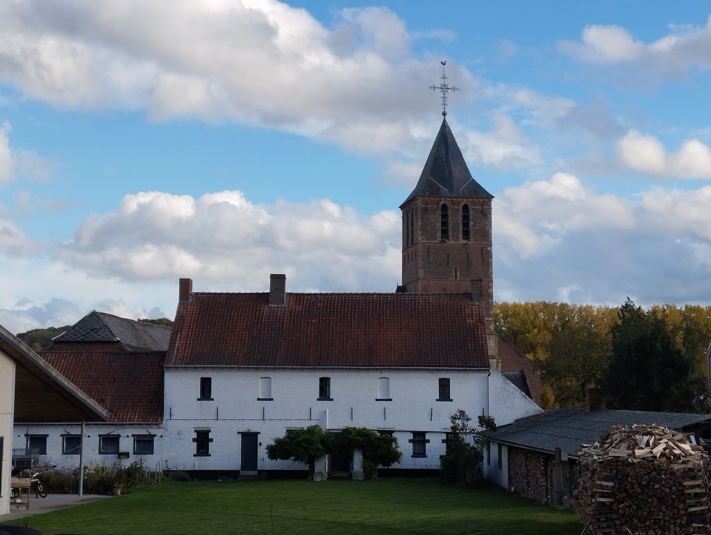 Onlangs nam ik een foto (hieronder) die wel nog leek op bovenstaande foto. Ik vond het vooral mooi dat met de herfst de bomen achter de kerk mooi geel kleurden. Dat zie je ook op de foto van Marcel hierboven. Als de zon schijnt, zie je het nog beter. De ramen en deuren van ons huis gingen intussen van kleur beige naar antraciet.