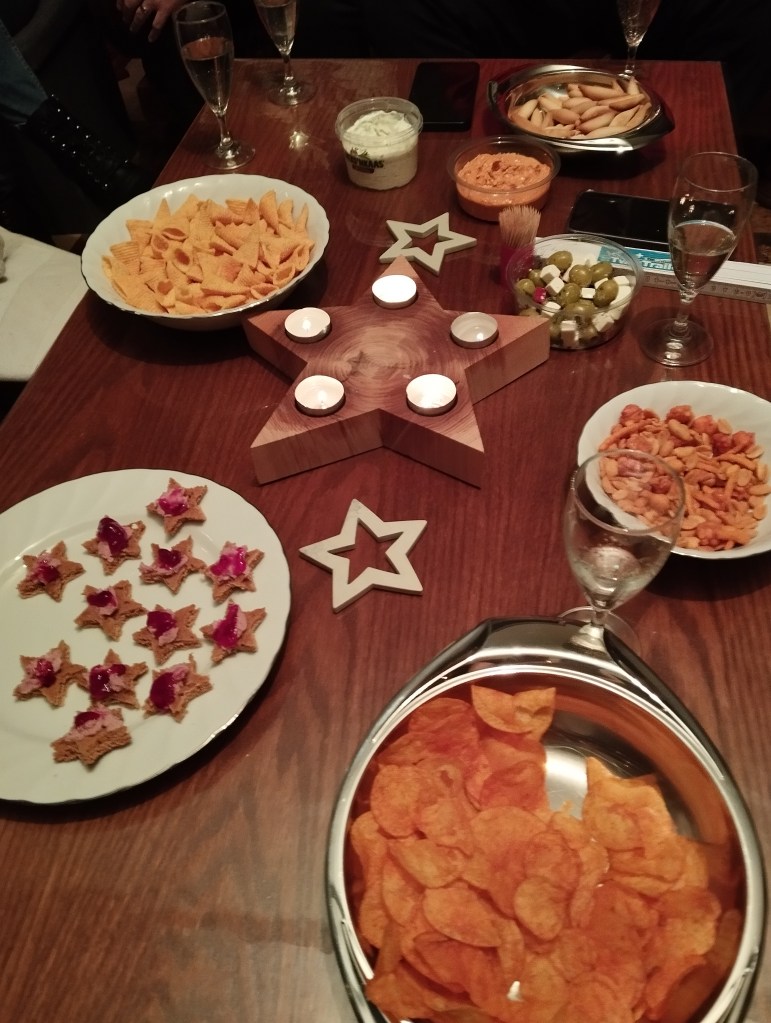 De laatste dag van het jaar verliep eigenlijk gelijkaardig met kerstavond. Het was bij ons thuis en dus deden we eerst de voorbereidingen en daarna het werk, om dan om 20u aan onze oudejaarsavond te beginnen. Ik nam niet zo veel foto’s die avond. Het was thans wel erg gezellig, want al m’n zussen en hun gezinnetjes konden komen. Lang geleden dat we voltallig waren met oudejaar. Er werd genoten van de aperitief en de hapjes, van het vlees en de kroketten én van de vele cadeautjes. Want met de drie kindjes zijn er nu veel cadeautjes voor oma en opa en voor meters en tantes. Ik was heel blij met de lieve cadeautjes die ik kreeg.