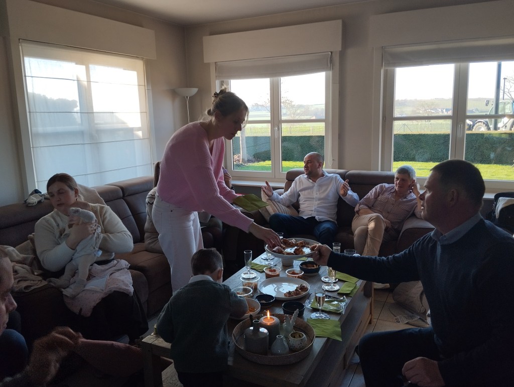 ’s Middags was het thuis feest: nonkel Raf en zijn gezin kwamen nieuwjaren. Van de zussen is het opnieuw: wie kan, komt. Zus Stefanie en zus Sofie kwamen met hun gezinnetje. Gezellig aperitieven, een nieuwjaarsbrief mag niet ontbreken, veel pakjes uitdelen en openen, lekker eten… Rustig aan allemaal. Genieten van het samen zijn. In de late namiddag gingen ze naar huis. M’n mama en ik gingen dan bij oma Irma, de mama van m’n mama, in het rusthuis. Niets speciaals daar, maar er gewoon eens zijn is al genoeg.