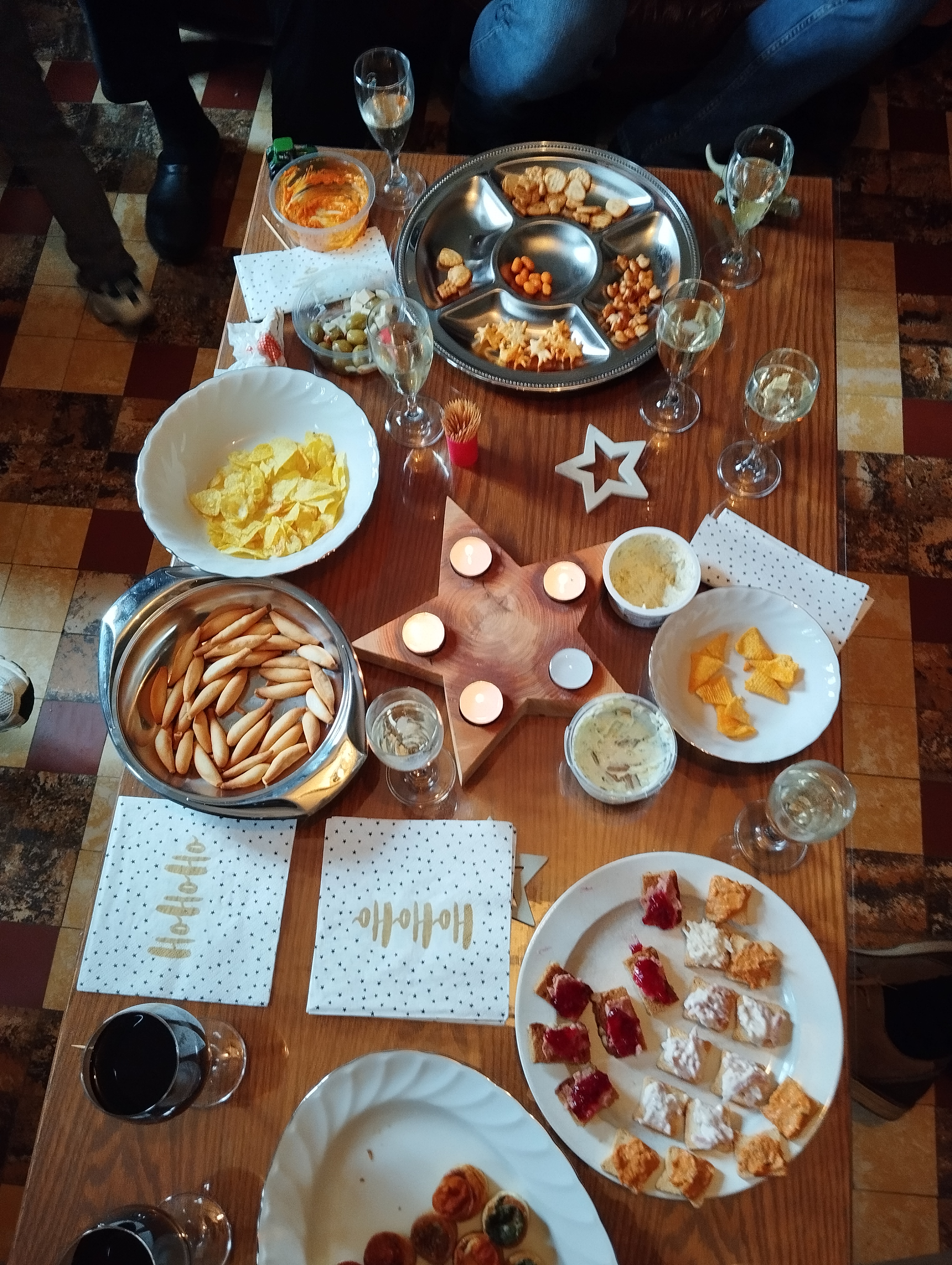 De laatste dag van het jaar verliep eigenlijk gelijkaardig met kerstavond. Het was bij ons thuis en dus deden we eerst de voorbereidingen en daarna het werk, om dan om 20u aan onze oudejaarsavond te beginnen. Ik nam niet zo veel foto’s die avond. Het was thans wel erg gezellig, want al m’n zussen en hun gezinnetjes konden komen. Lang geleden dat we voltallig waren met oudejaar. Er werd genoten van de aperitief en de hapjes, van het vlees en de kroketten én van de vele cadeautjes. Want met de drie kindjes zijn er nu veel cadeautjes voor oma en opa en voor meters en tantes. Ik was heel blij met de lieve cadeautjes die ik kreeg.